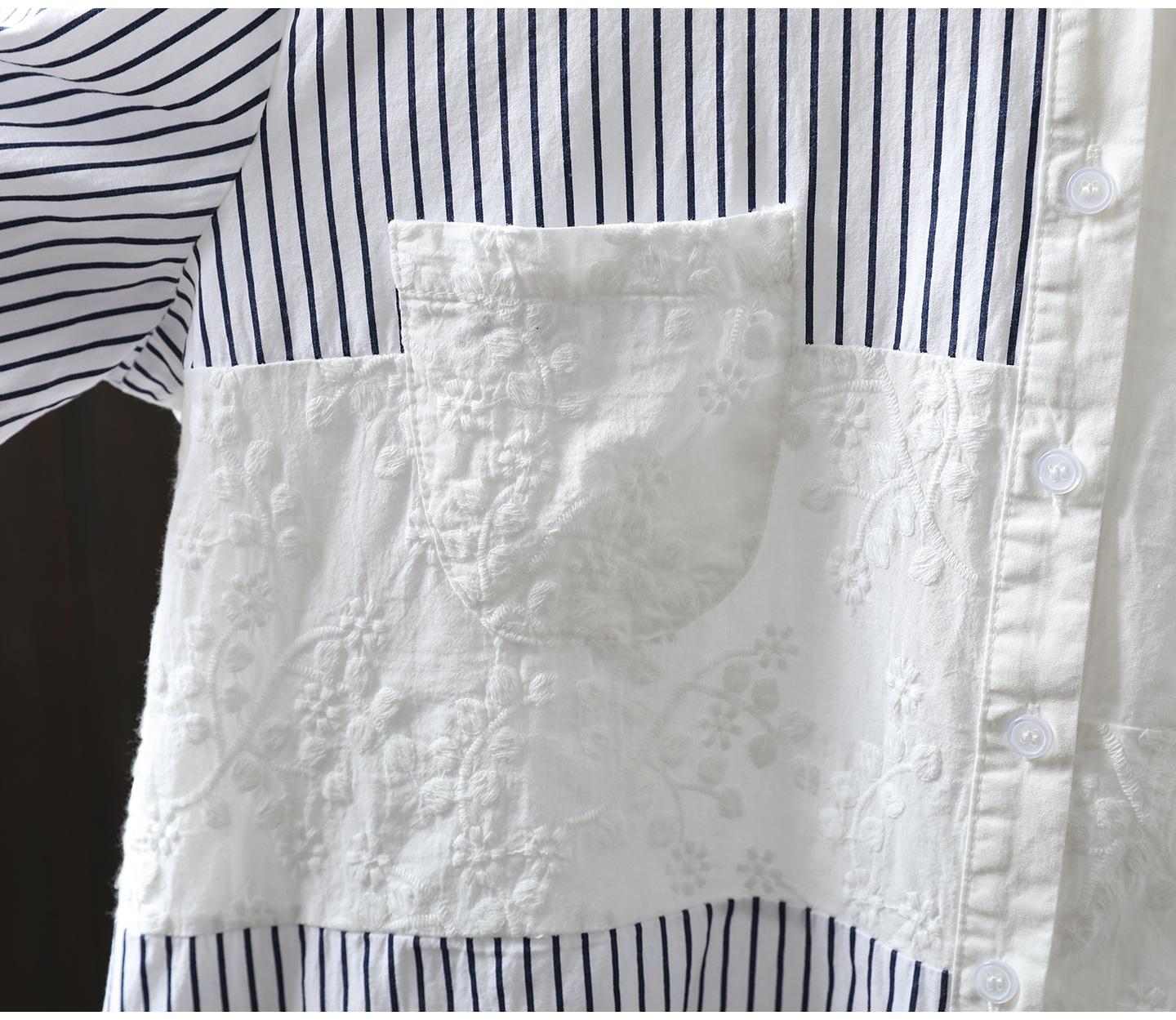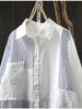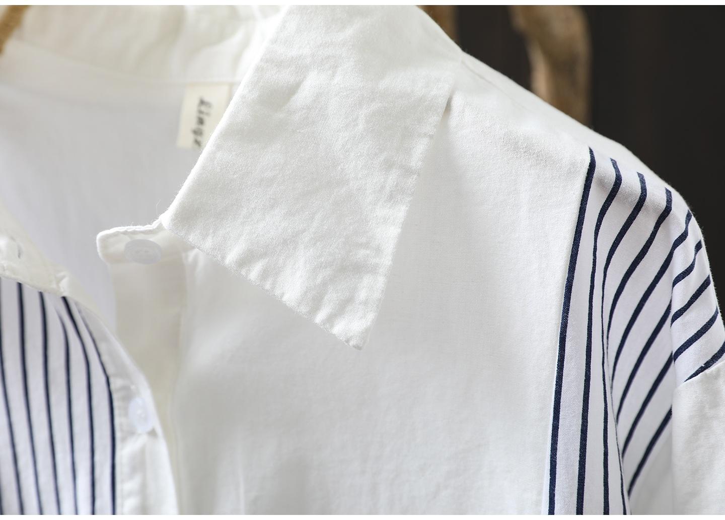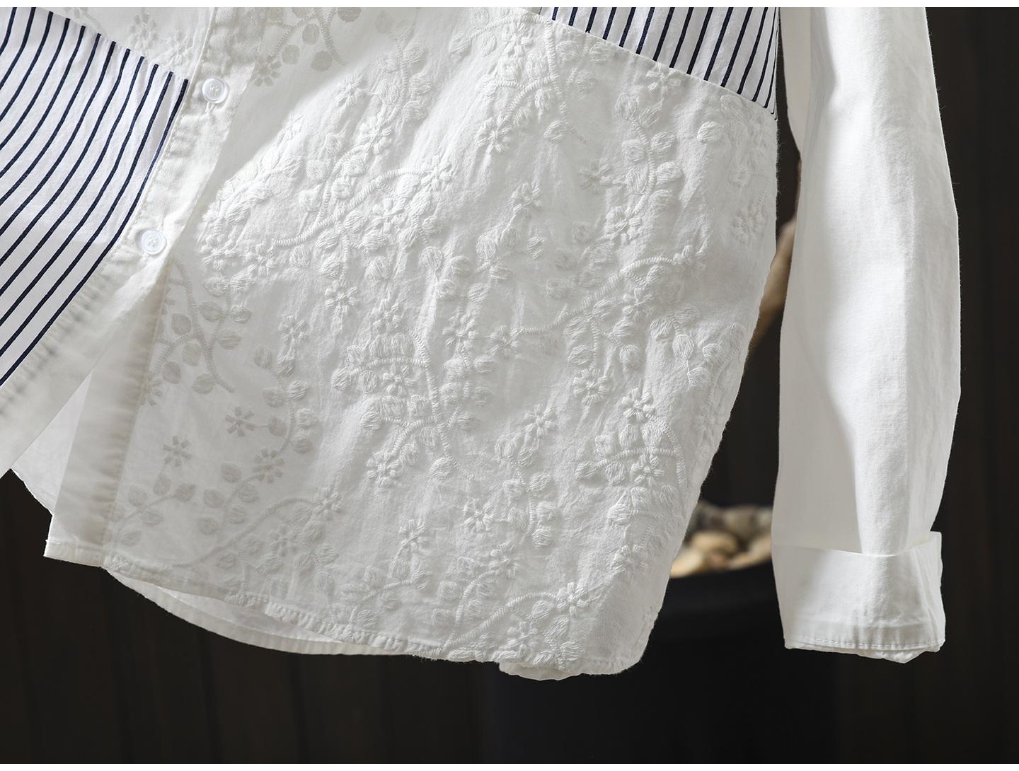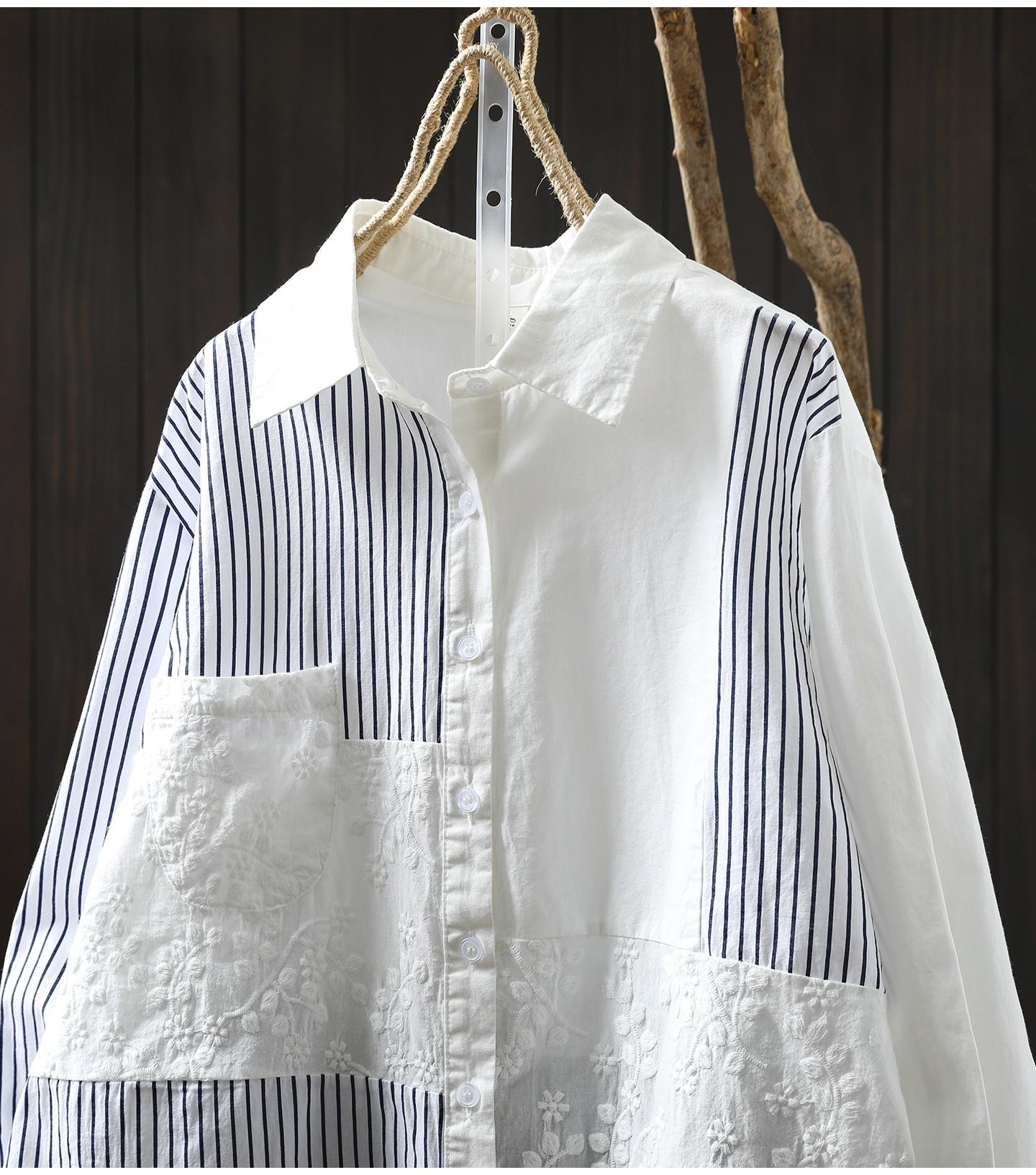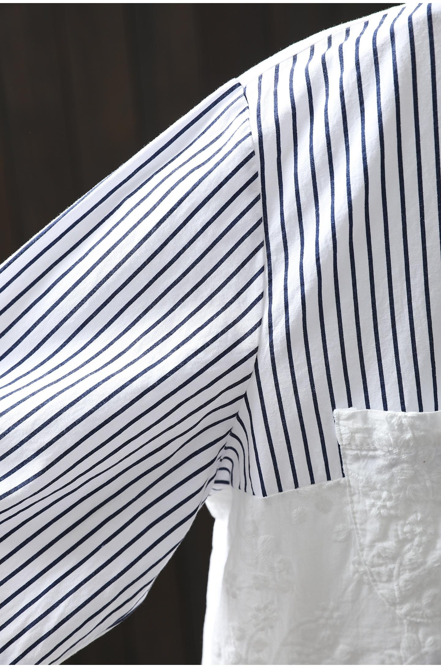 Camisa de patchwork a rayas azules y blancas de jacquard de algodón puro de manga larga para mujer petite otoño 2025 nueva top suelto con personalidad