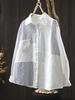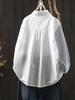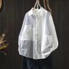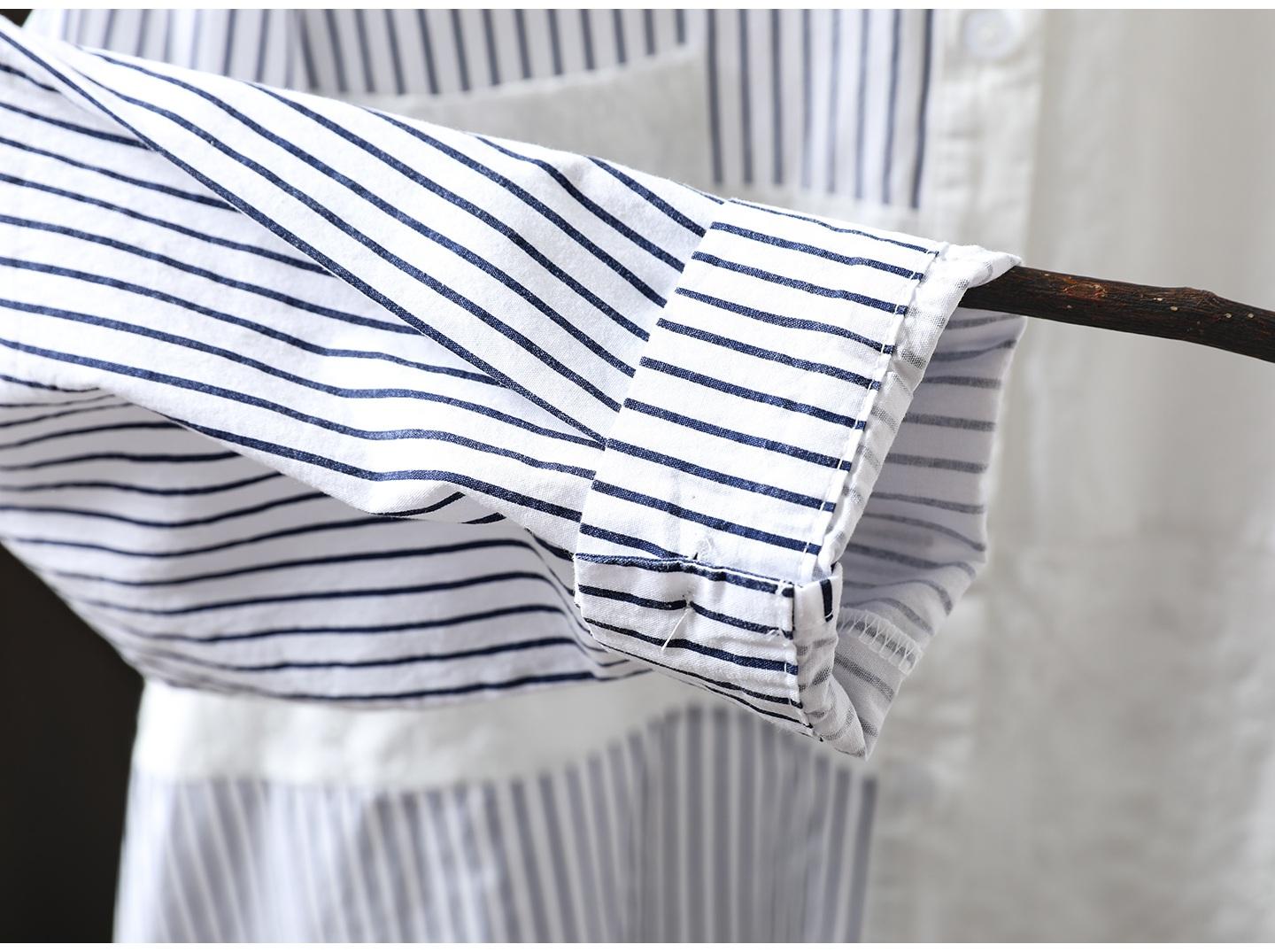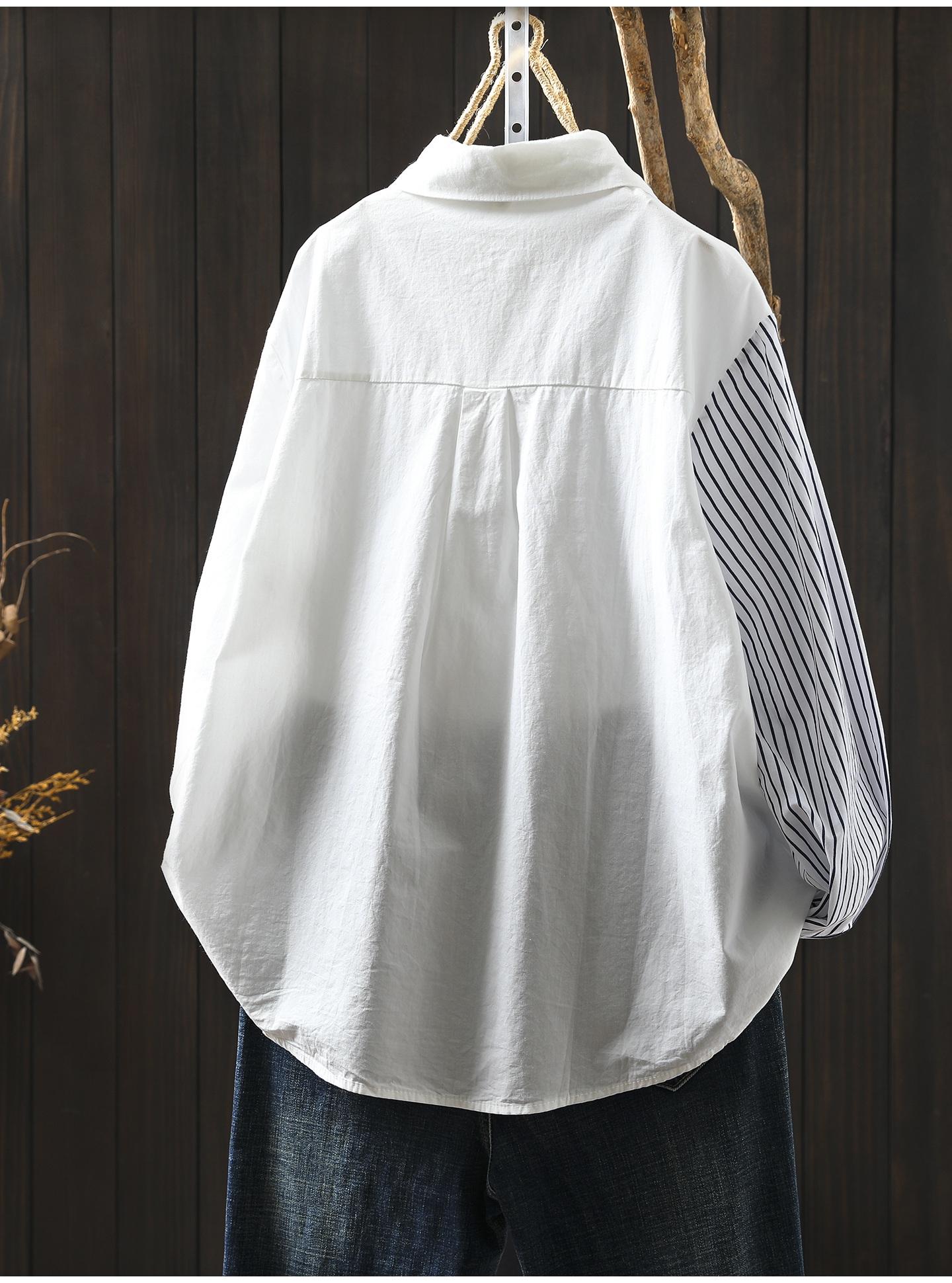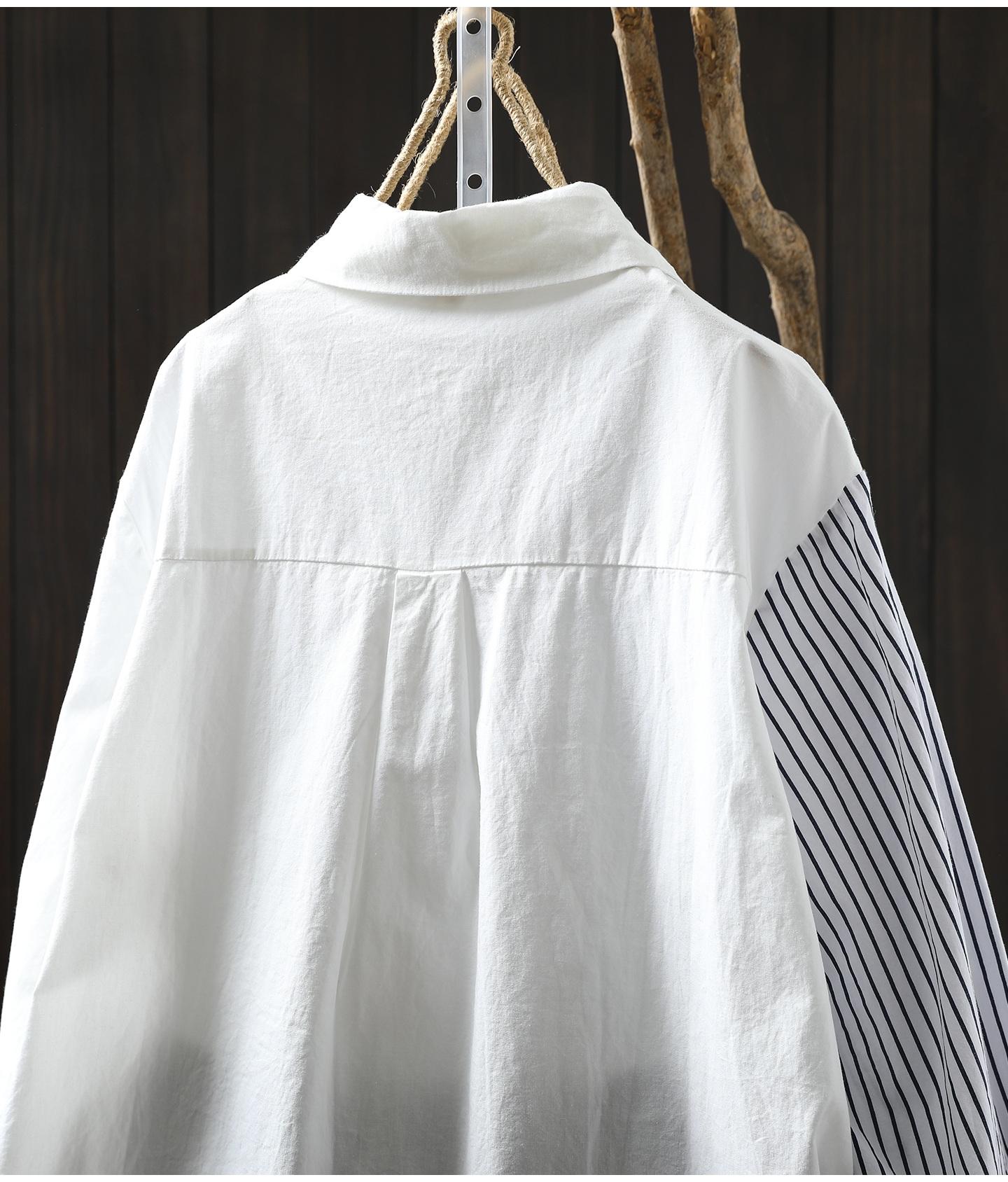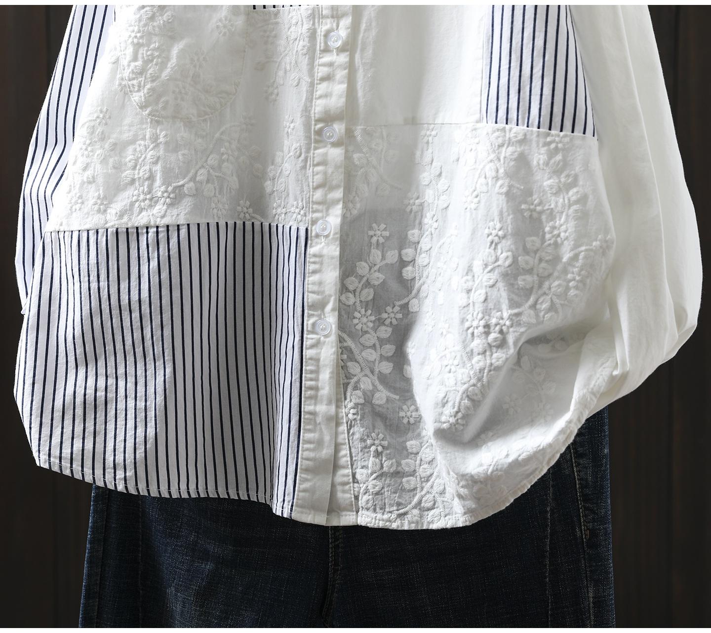 Camisa de patchwork a rayas azules y blancas de jacquard de algodón puro de manga larga para mujer petite otoño 2025 nueva top suelto con personalidad