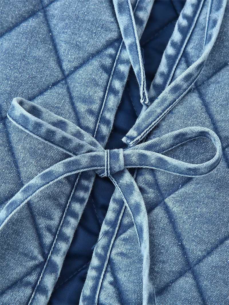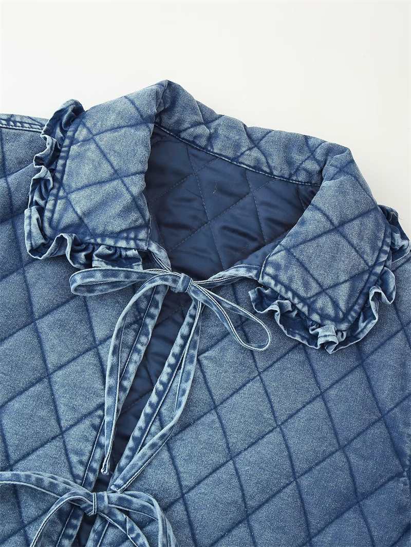 Moda Casual Nuevo Estilo Europeo y Americano Chaqueta de Mezclilla Holgada de Verano para Mujer con Lazo Mangas Largas Solapa de Comercio Exterior