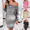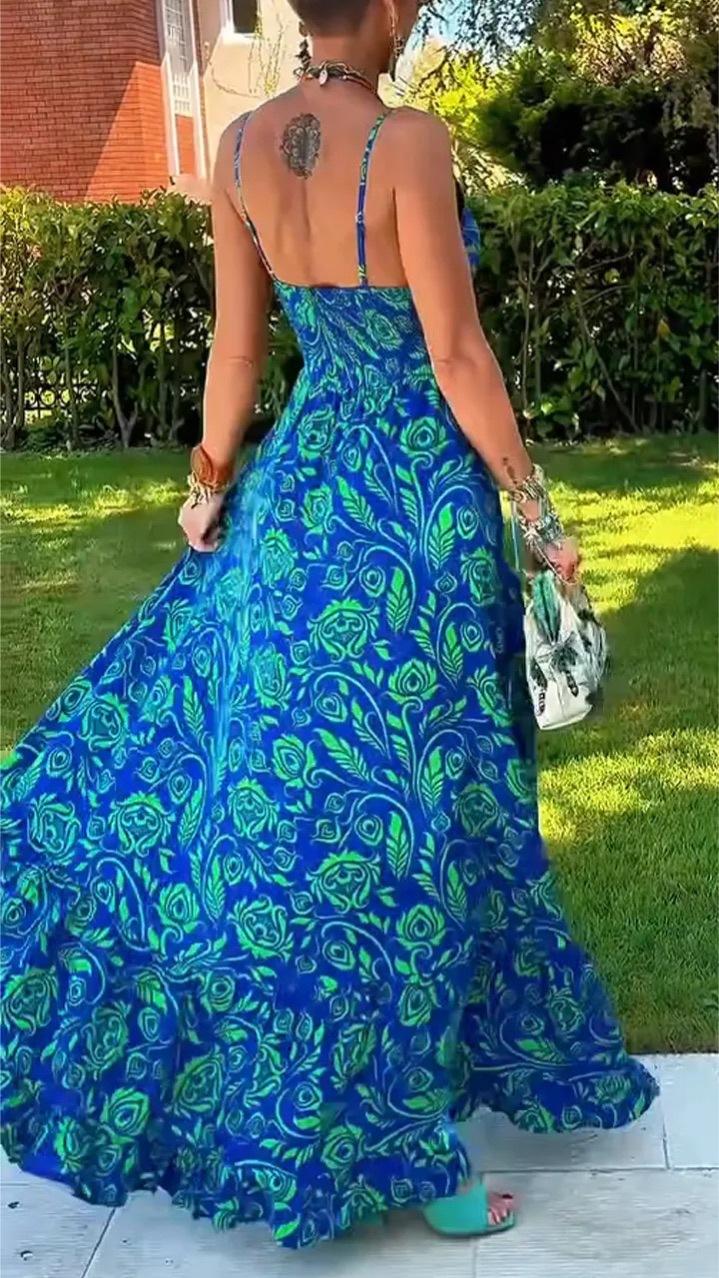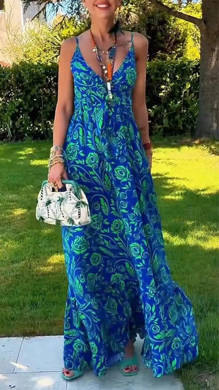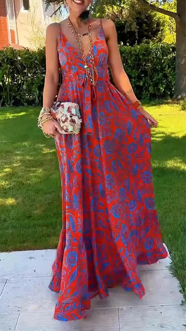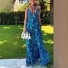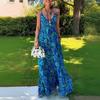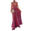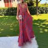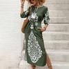 Nuevo Otoño 2025 Europeo y Americano Transfronterizo Amazon Transfronterizo Moda Retro Estampado Cuello en V Vestido Midi para Mujer