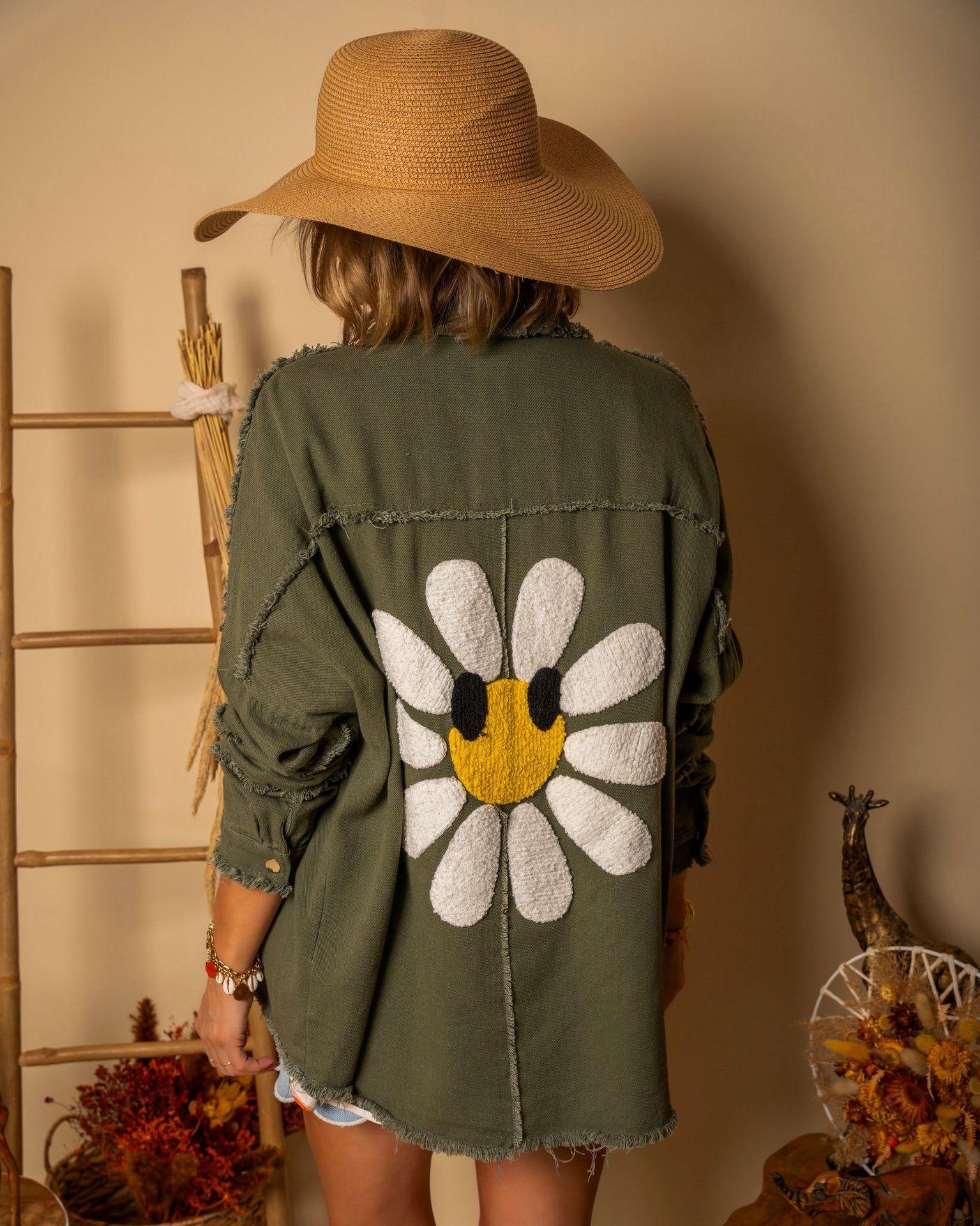 Chaqueta de mezclilla rasgada de largo medio estilo europeo y americano nuevo 2025 para mujer, otoño e invierno, manga larga, casual, con solapa