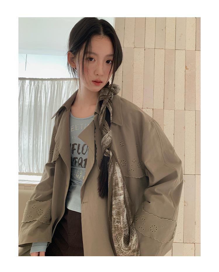 Interpretación de la Belleza Newopen 25 Primavera y Otoño Largo Suave Estilo Británico Chaqueta Cortavientos Femenina Ropa de Trabajo Casual F6175