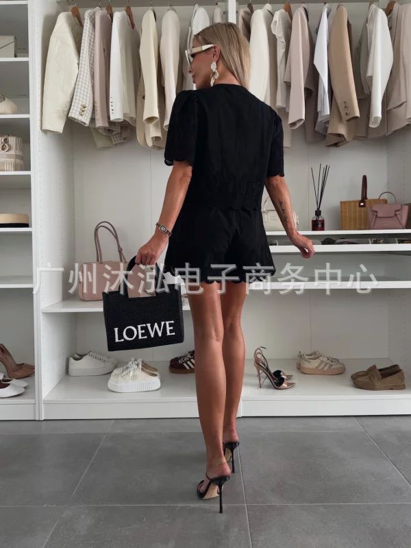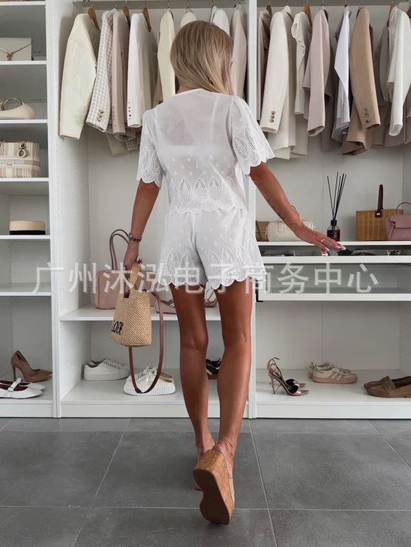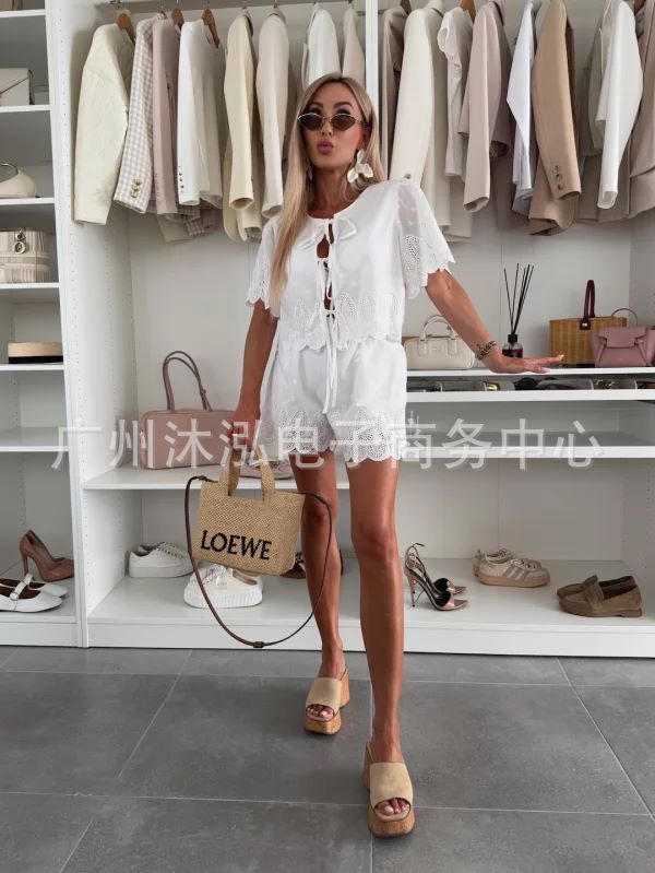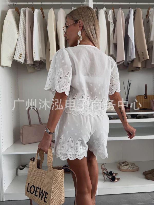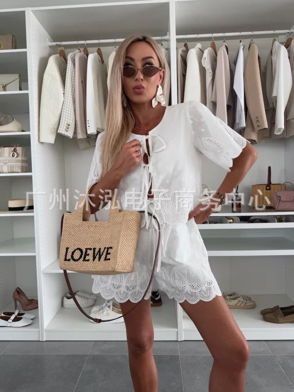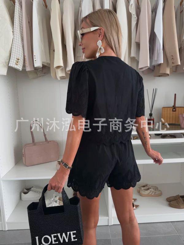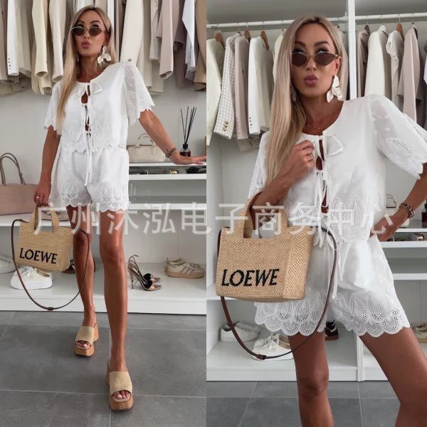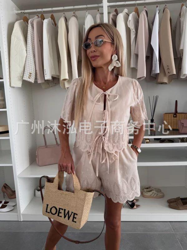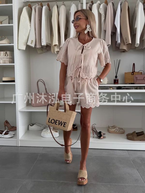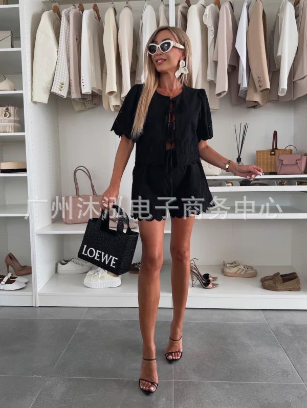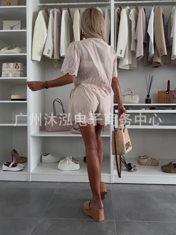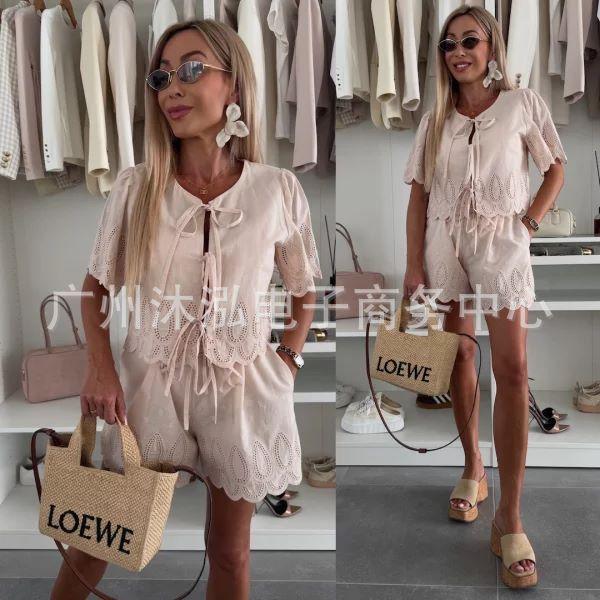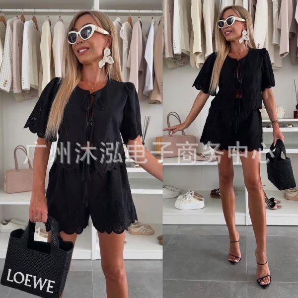 Conjuntos de Tops de Manga Corta y Shorts de Estilo Bohemio Elegante Versátil Casual Francés Nuevo de Primavera Transfronterizo Europeo y Americano 2025