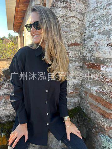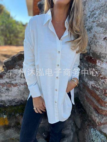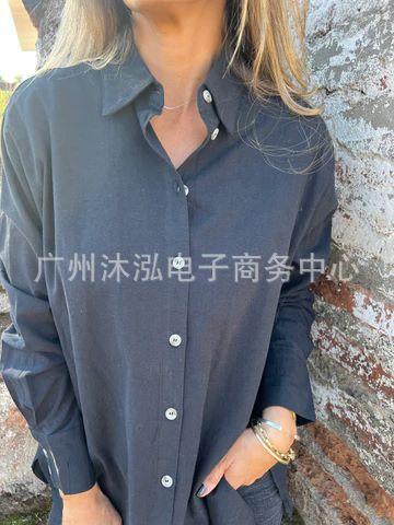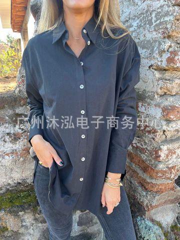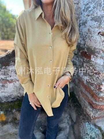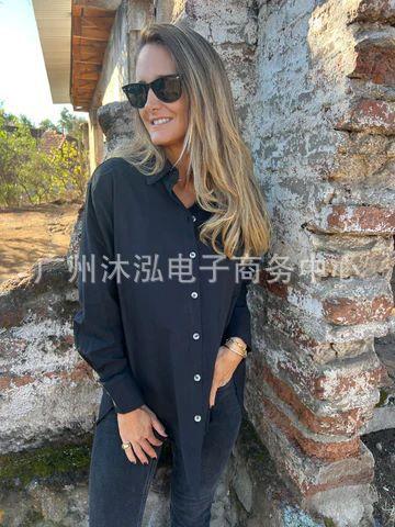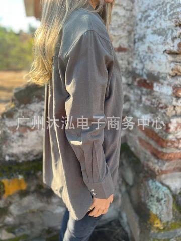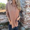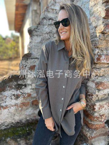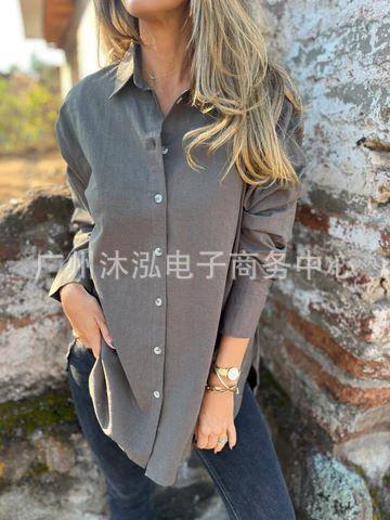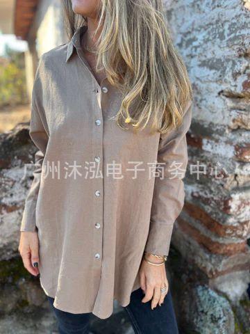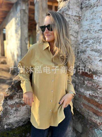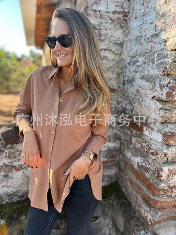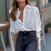 2025 Transfronterizo Europeo y Americano Wish Amazon Nueva Camisa de Verano para Mujer Color Puro Solapa Camisa Casual