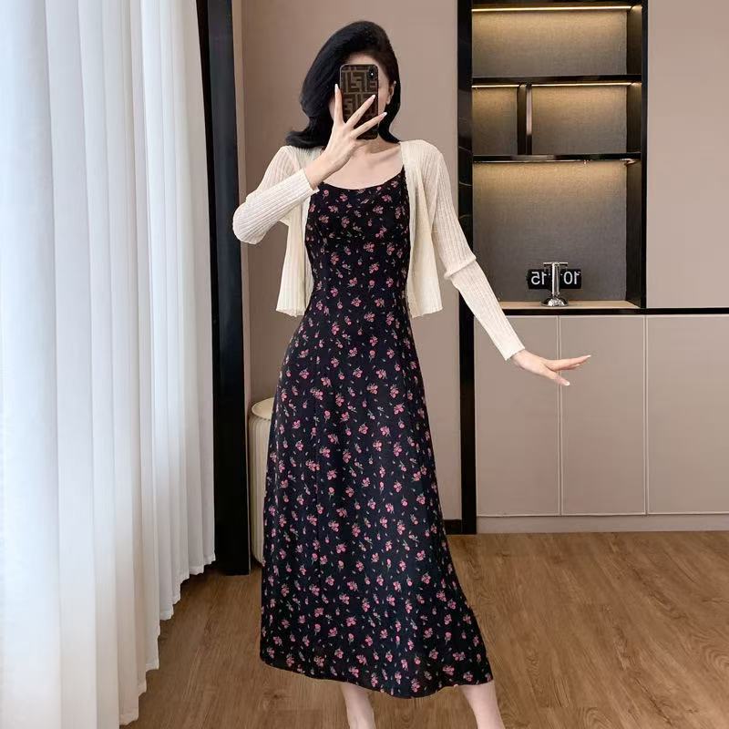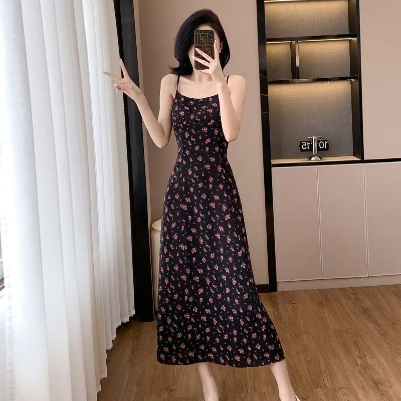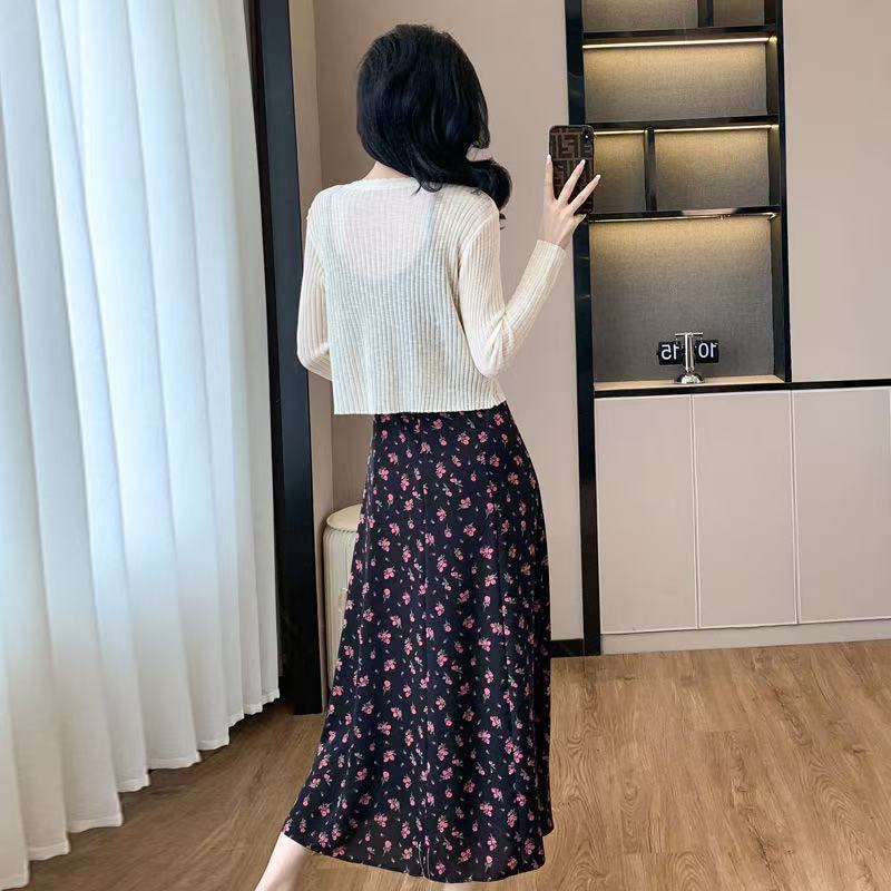 Falda de Tirantes Floral Retro Francés de Verano Estampada Talla Grande Ropa de Mujer para mm Gorditas para Usar Look Adelgazante Cintura Falda Larga