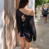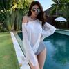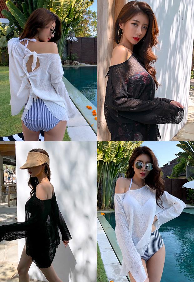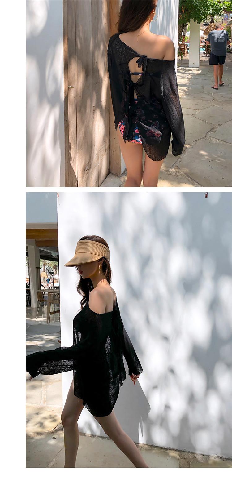 Traje de Baño Sexy Holgado para Mujer Spa Vacaciones Playa Chaqueta de Punto Blusa con Cordones Venta al por Mayor