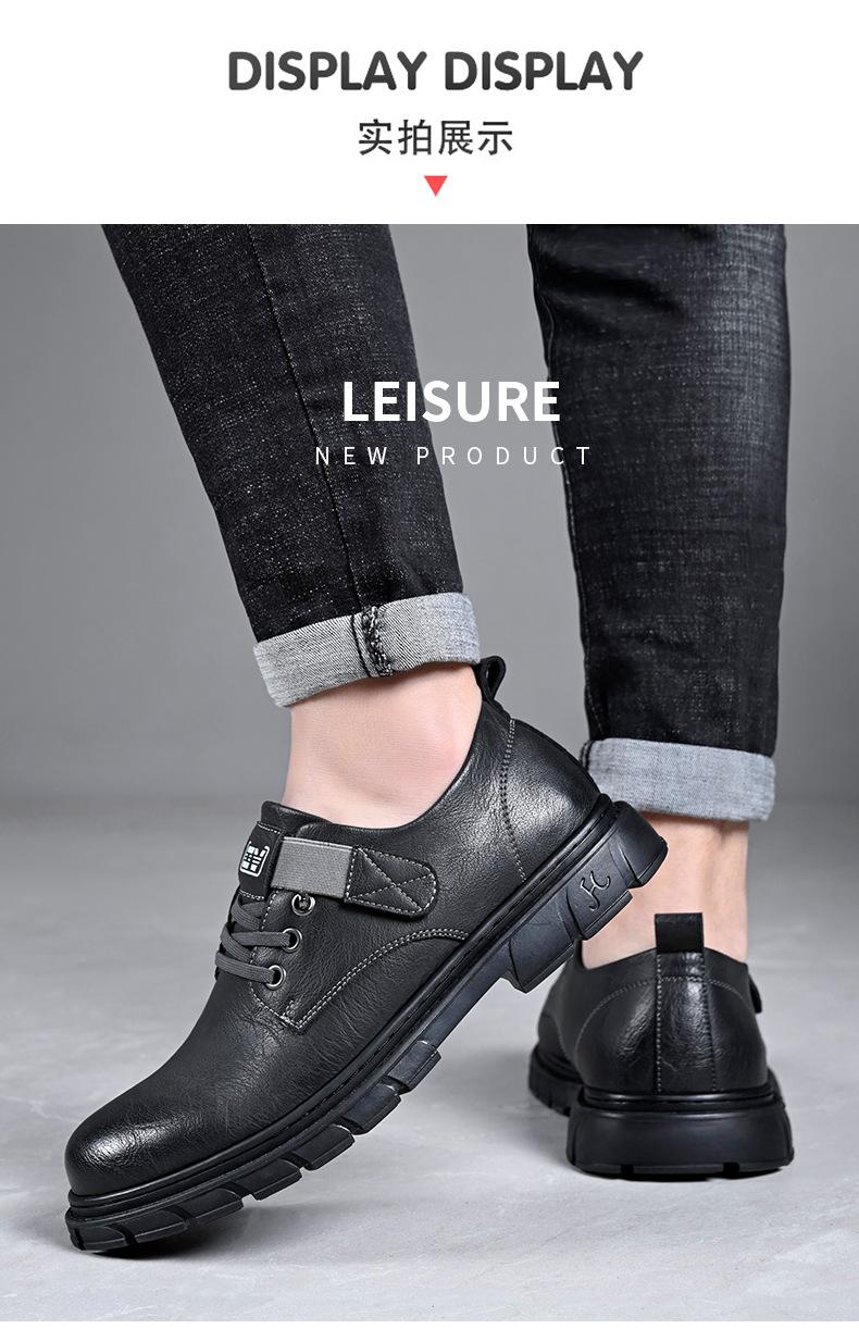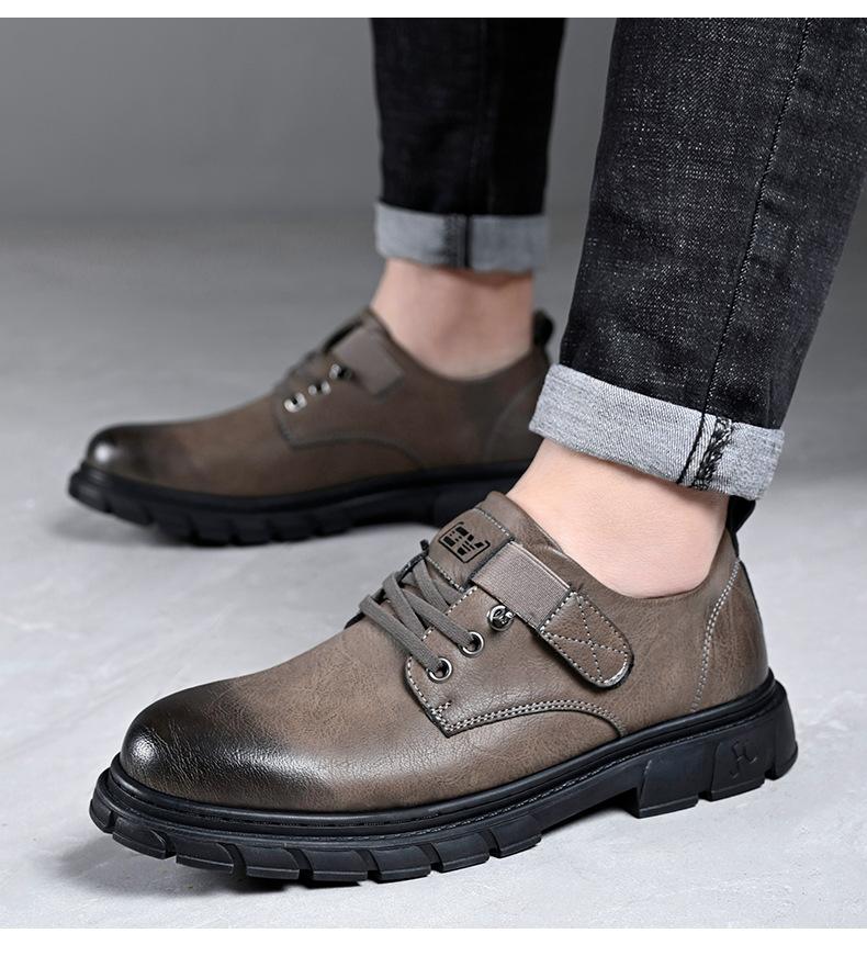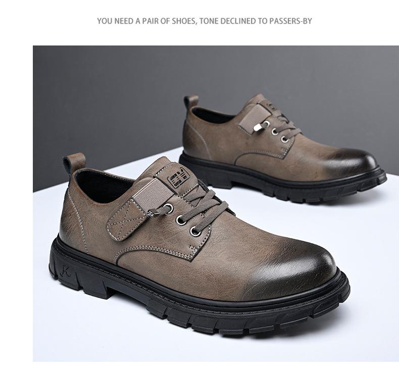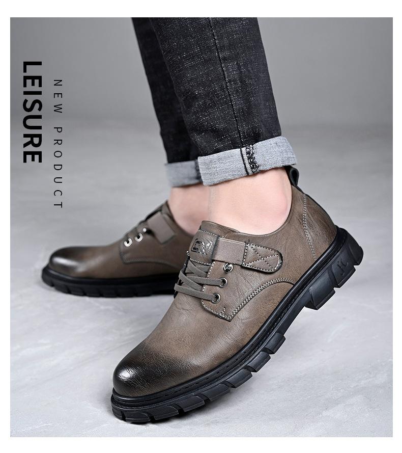 Zapatos de Cuero Antideslizantes de Primavera para Hombre Zapatos Casuales Zapatos de Moda de Punta Redonda Estilo Británico Retro para Trabajo