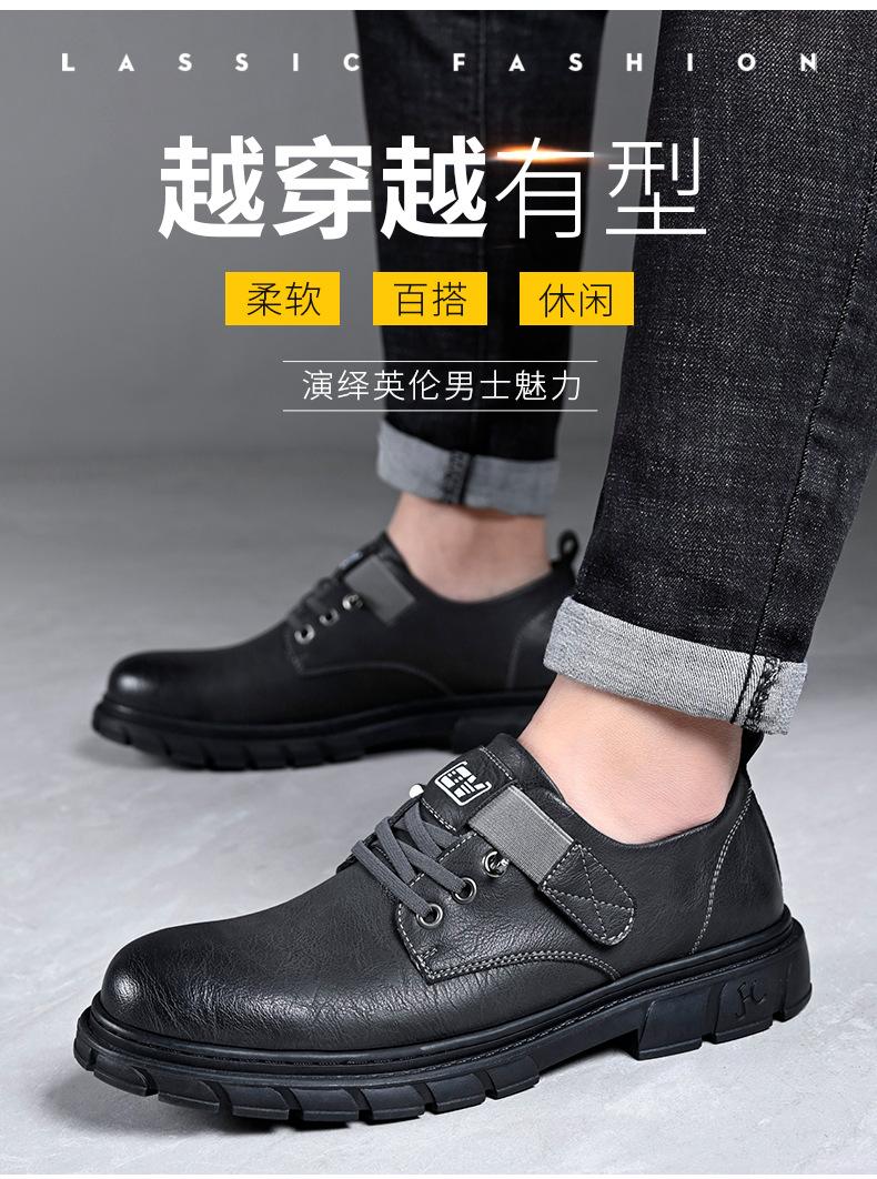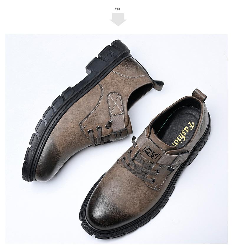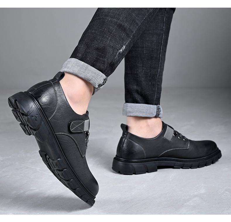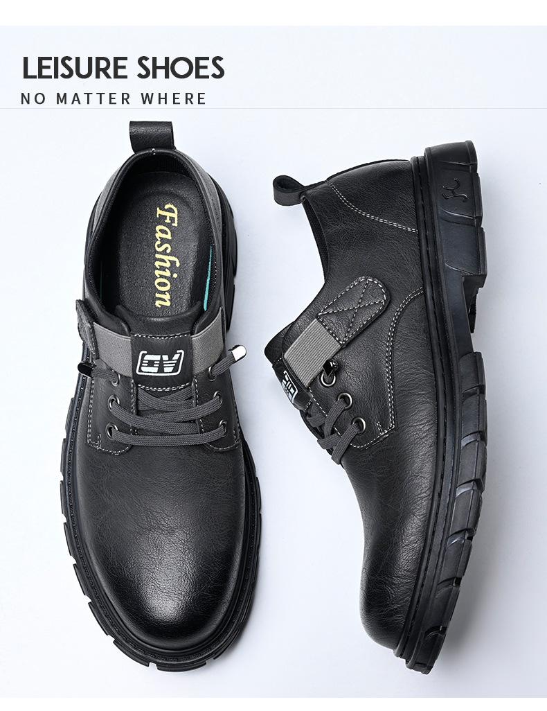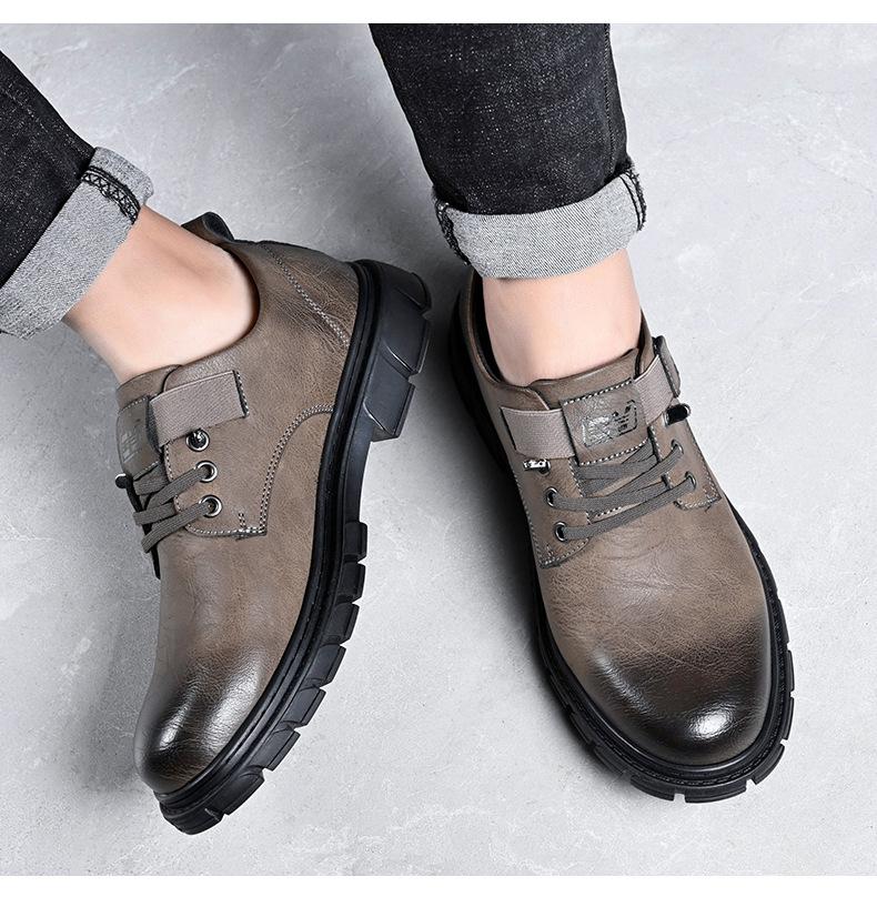 Zapatos de Cuero Antideslizantes de Primavera para Hombre Zapatos Casuales Zapatos de Moda de Punta Redonda Estilo Británico Retro para Trabajo