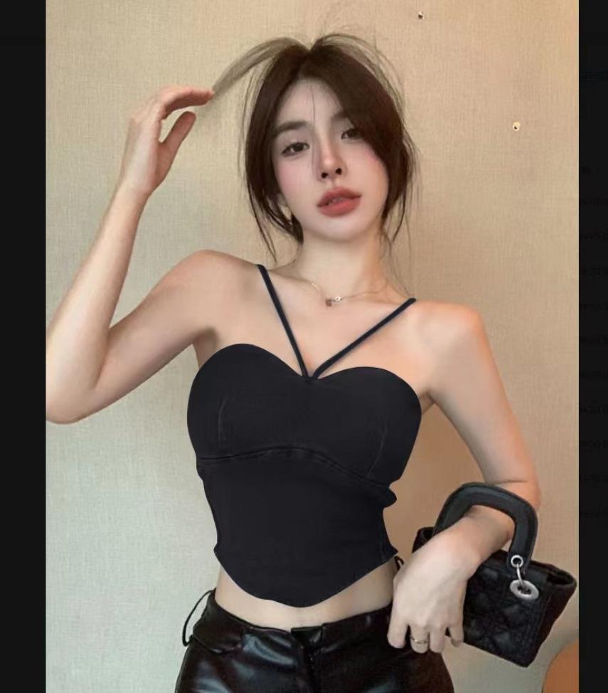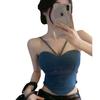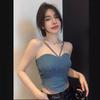 Top tubo halter para chica hot, camisola corta de punto, top sin mangas, nuevo verano 2024, sexy, versátil, nicho