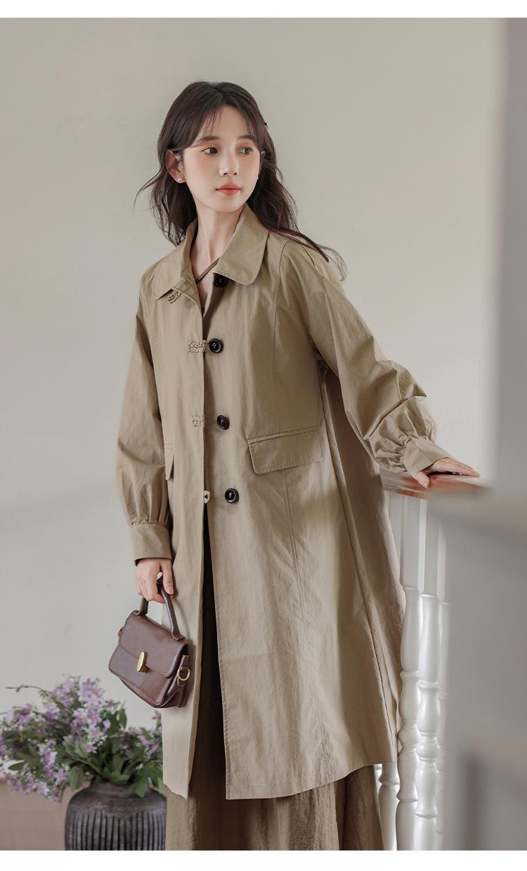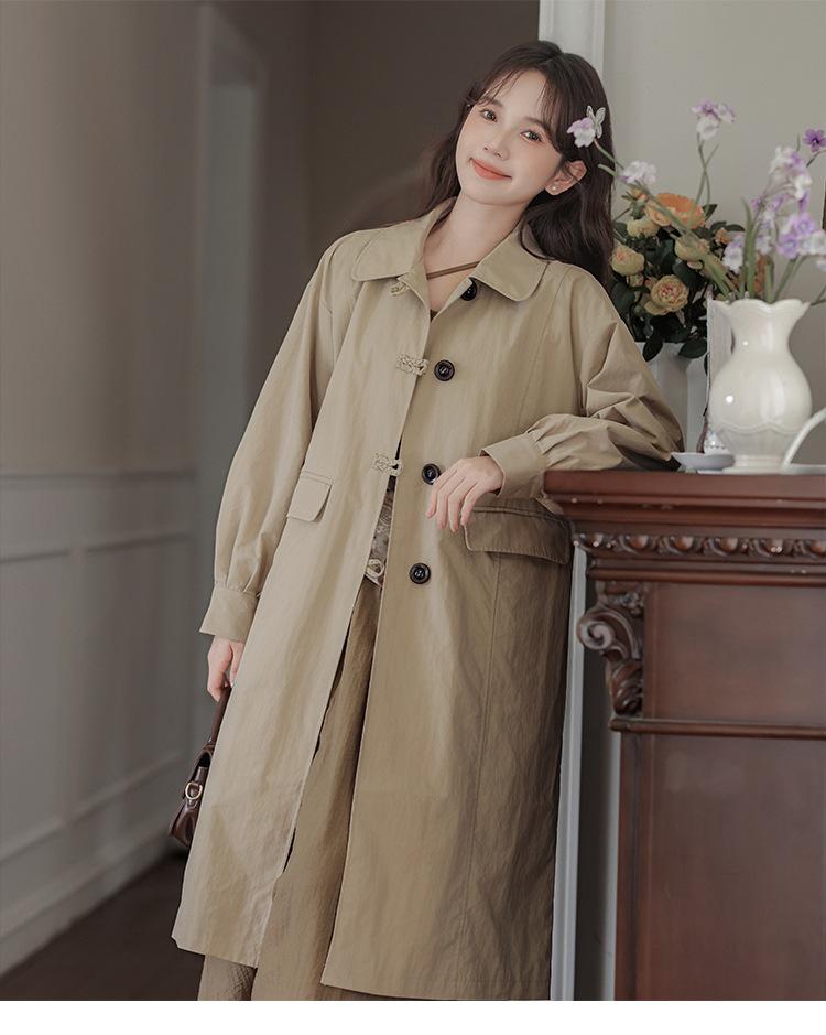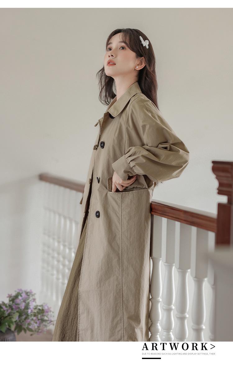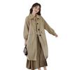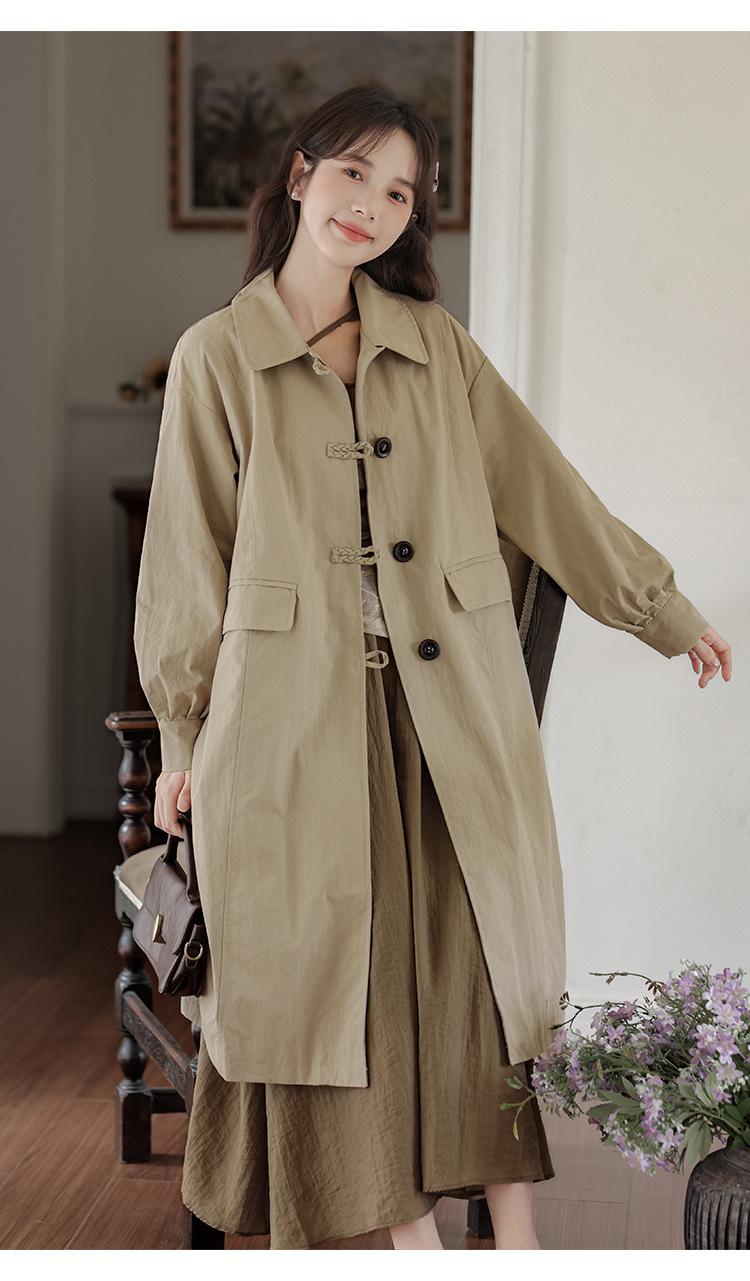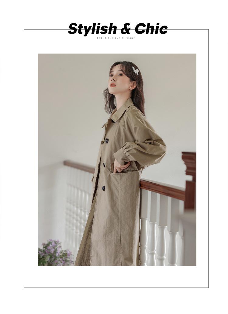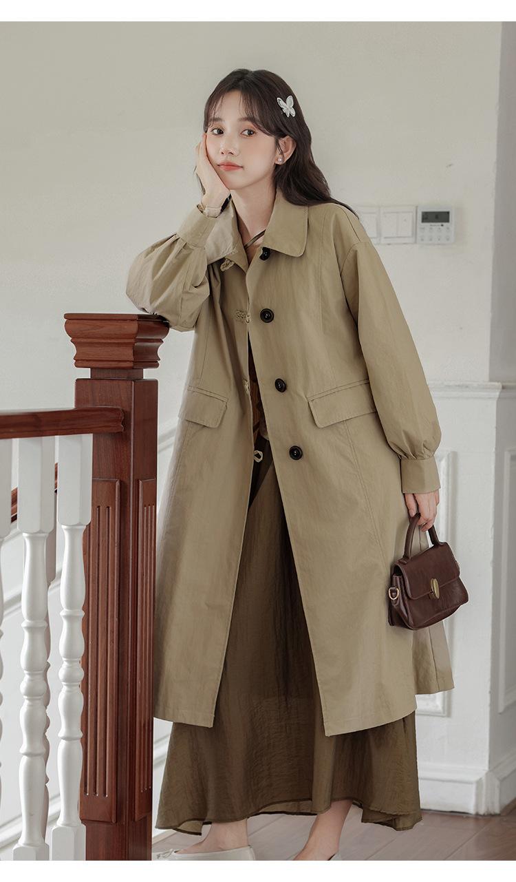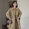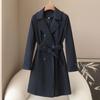 Abrigo Casual de Temperamento Simple de Estilo Británico Nuevo para Mujer Primavera/Otoño/Invierno Solapa Largo Medio Gabardina
