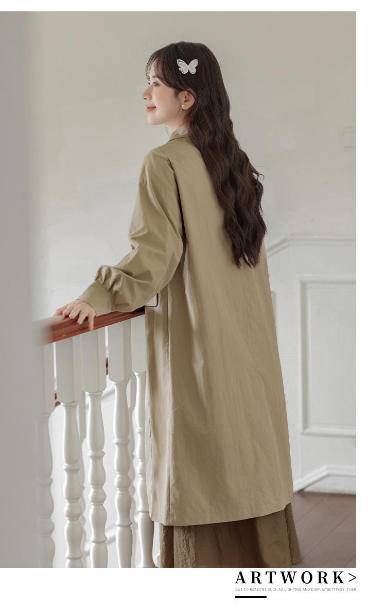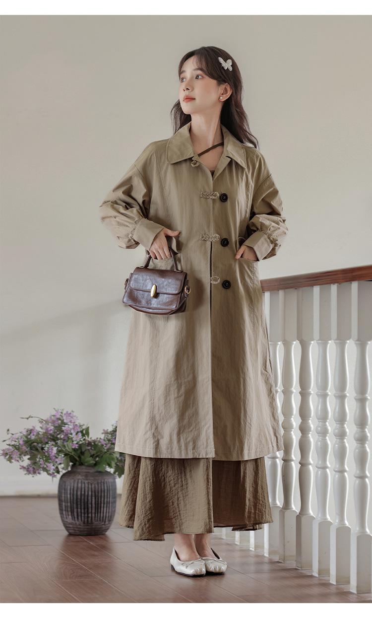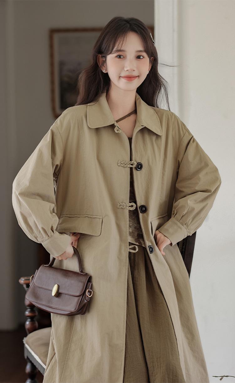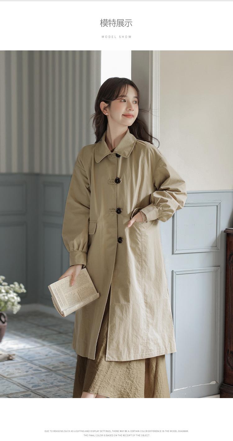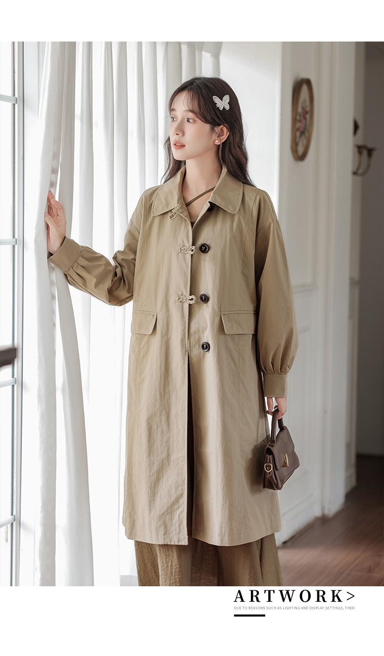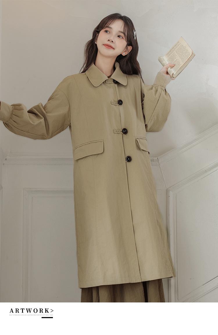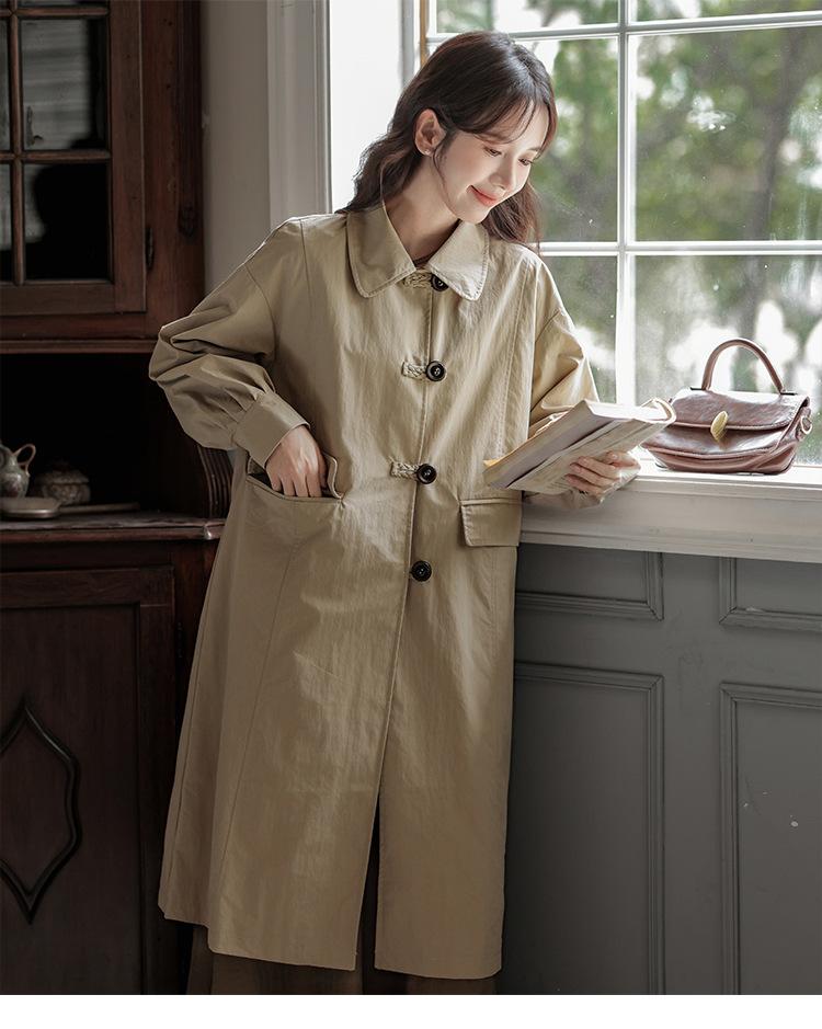 Abrigo Casual de Temperamento Simple de Estilo Británico Nuevo para Mujer Primavera/Otoño/Invierno Solapa Largo Medio Gabardina