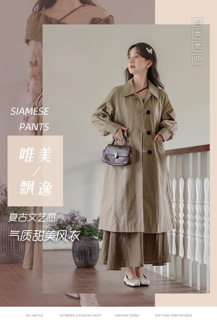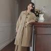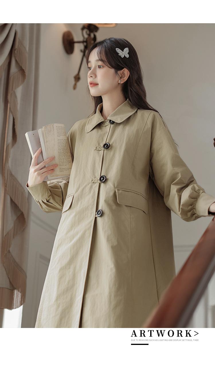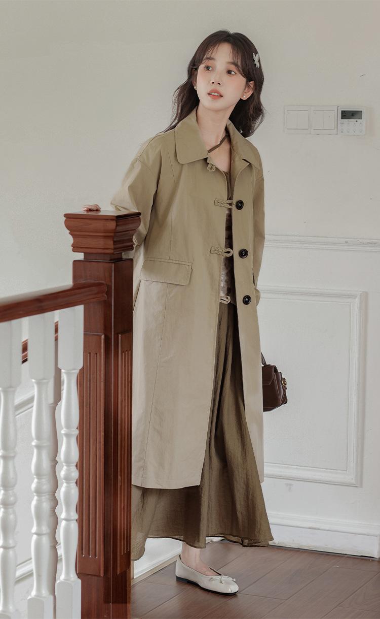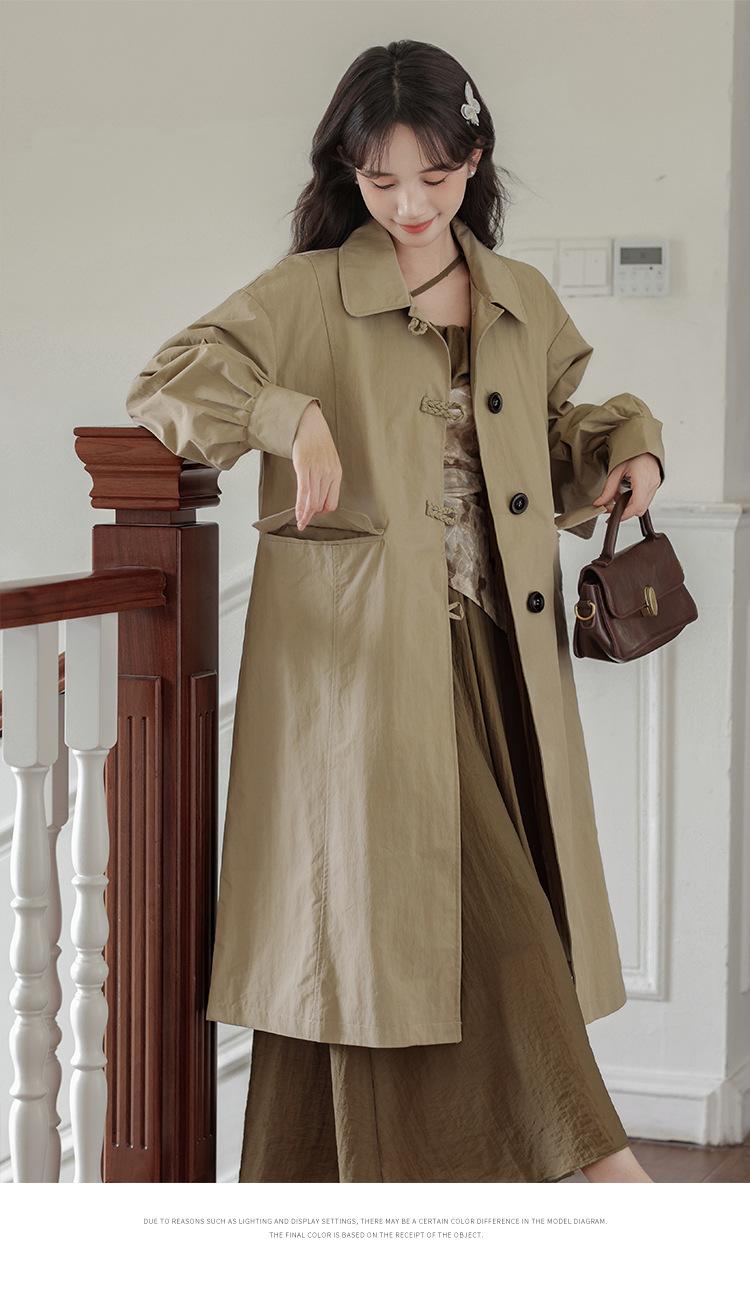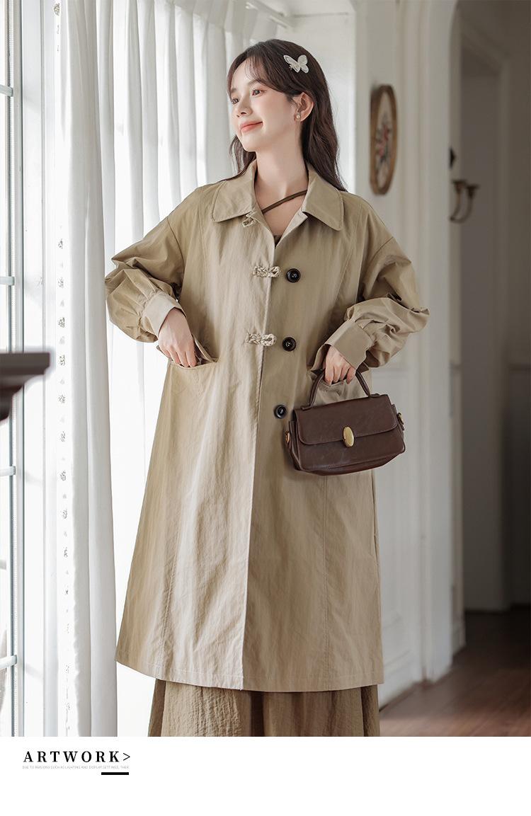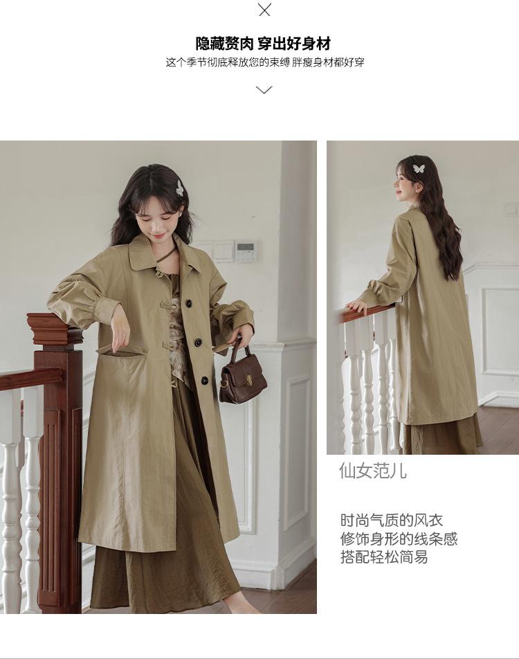 Abrigo Casual de Temperamento Simple de Estilo Británico Nuevo para Mujer Primavera/Otoño/Invierno Solapa Largo Medio Gabardina
