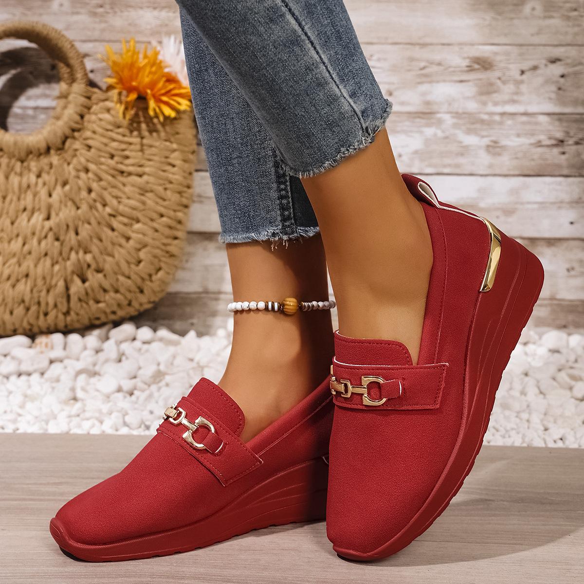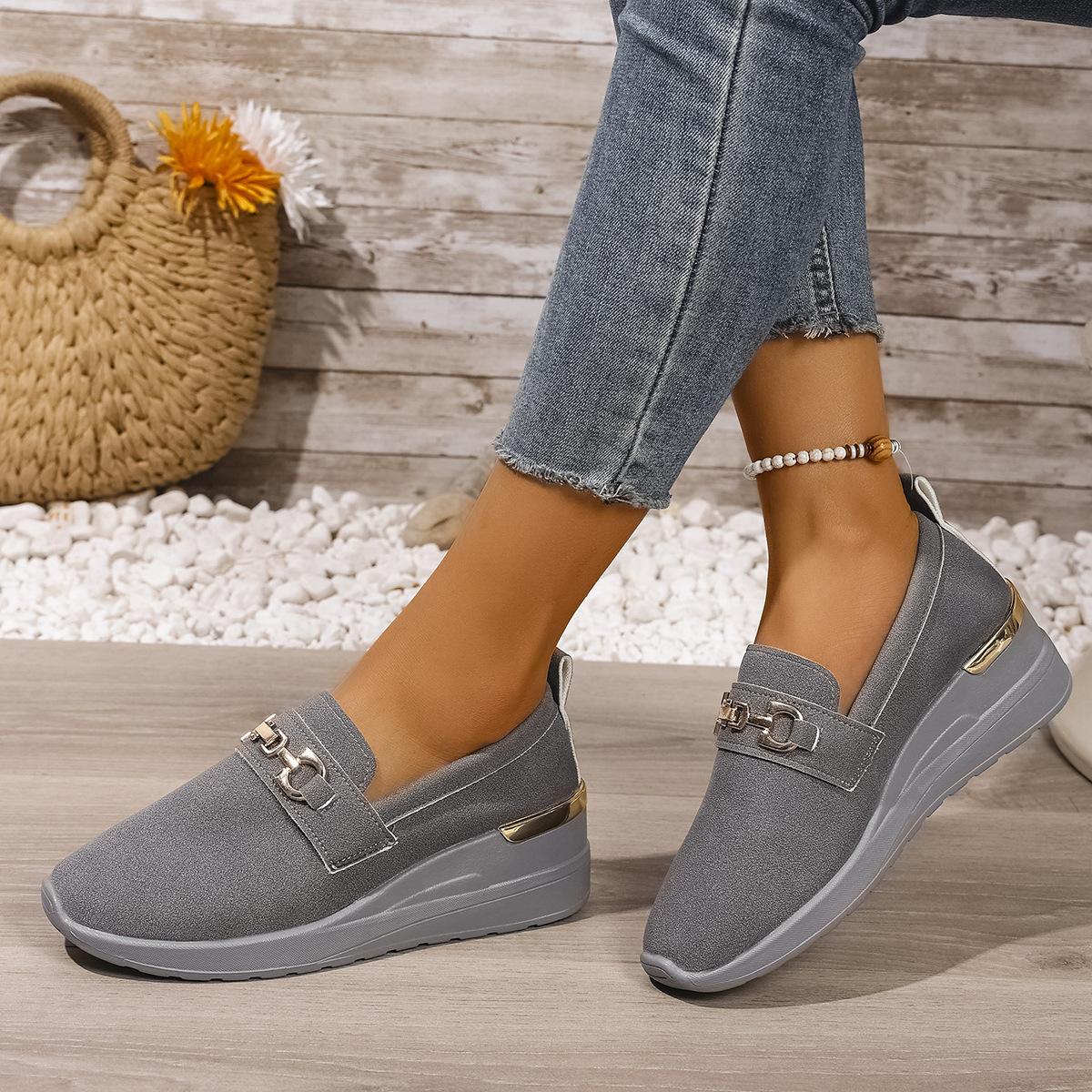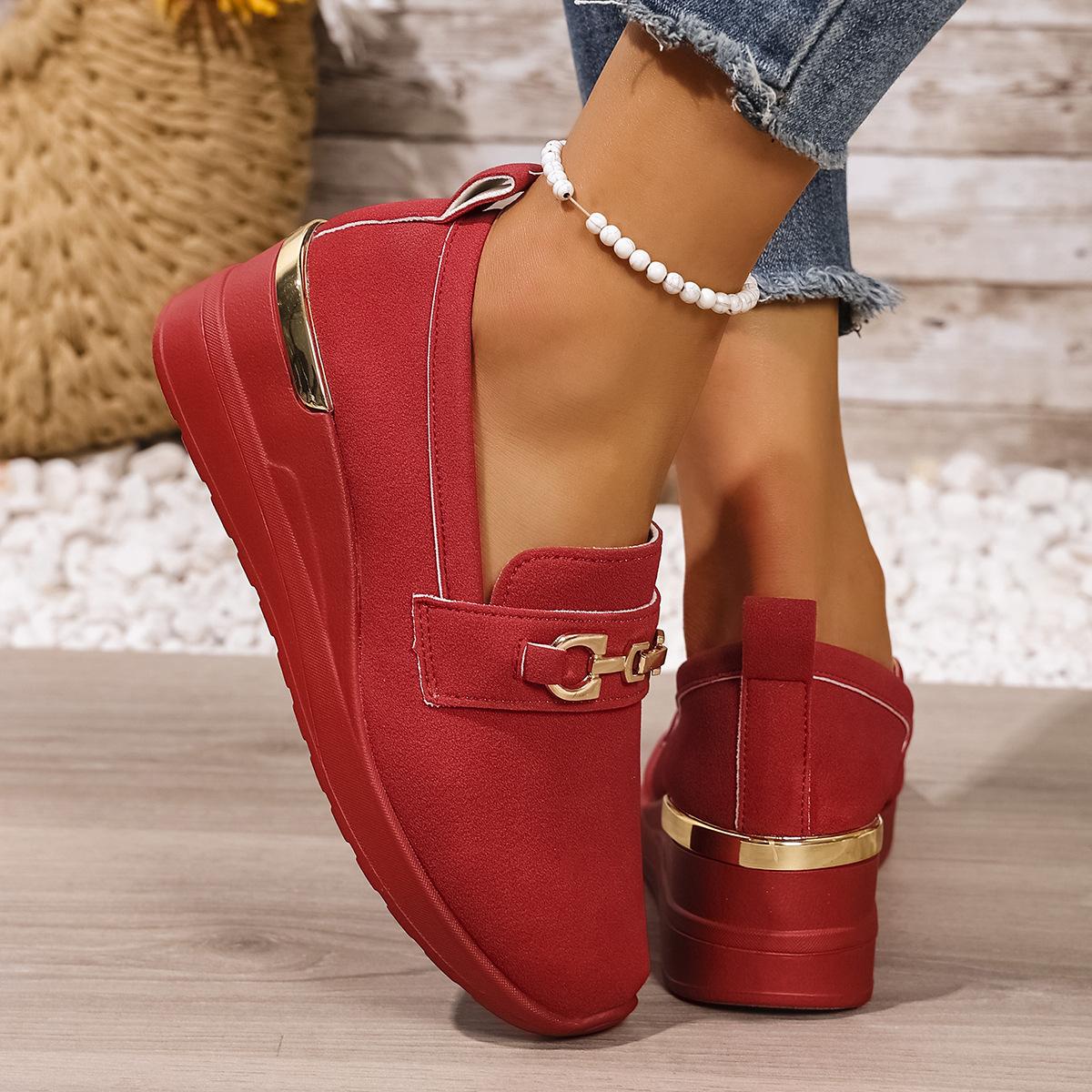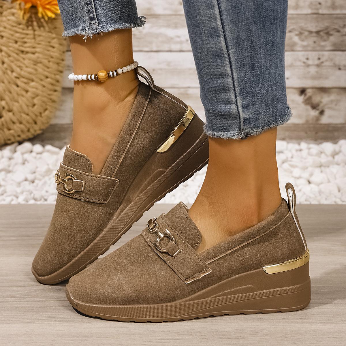 Comercio exterior transfronterizo talla grande primavera y otoño nuevos zapatos individuales casuales de mujer sin cordones punta redonda hebilla metálica tacón de cuña en stock al por mayor