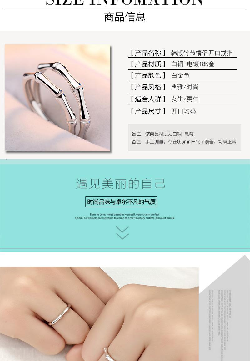 Anillos de Pareja Personalizados de Bambú de Venta Caliente Versión Japonesa y Coreana, Anillos para el Dedo Índice para Hombre y Mujer, Joyería de Cobre Plateada, Regalos para el Día de San Valentín
