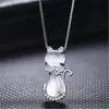 Collar Clavícula Oro Rosa para Mujer Cristal Rosa Natural Amor Gato Colgante Piedra Hibisco Día de San Valentín Amor Gato Colgante