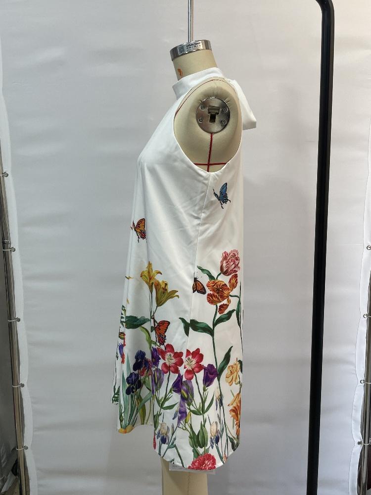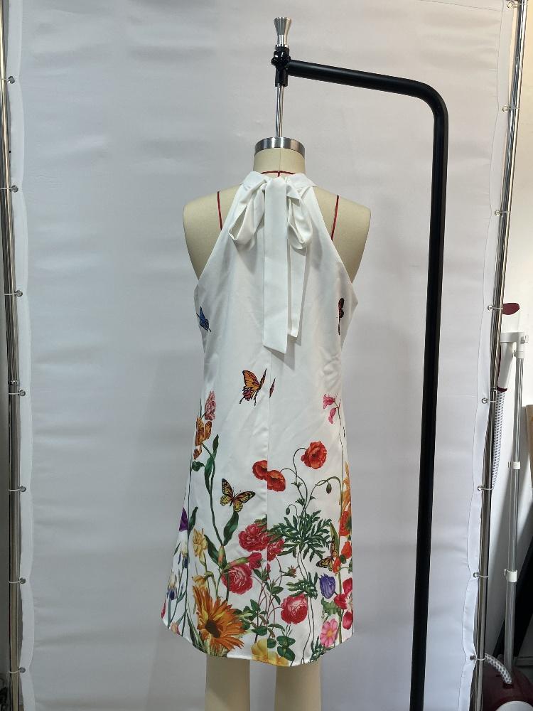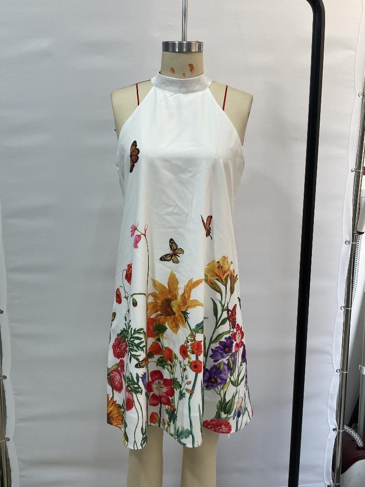 Diseño Único: Con cuello halter alto + estampados florales y de mariposas, rompiendo con la rutina de los vestidos florales convencionales.