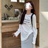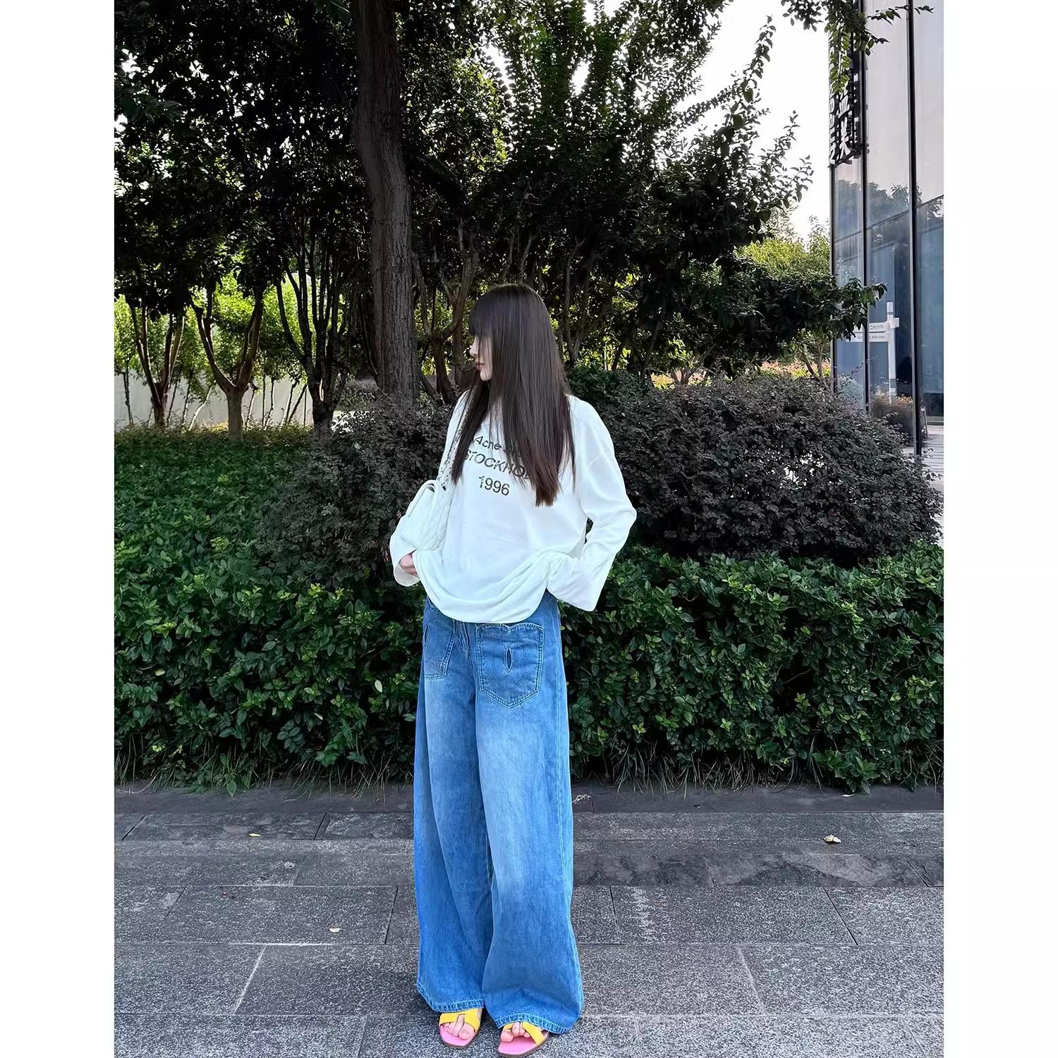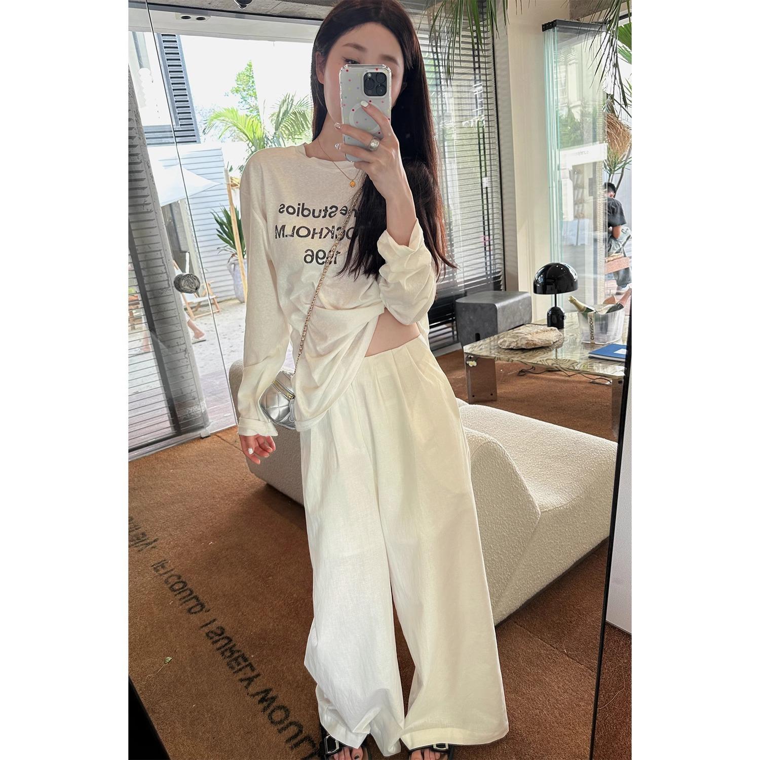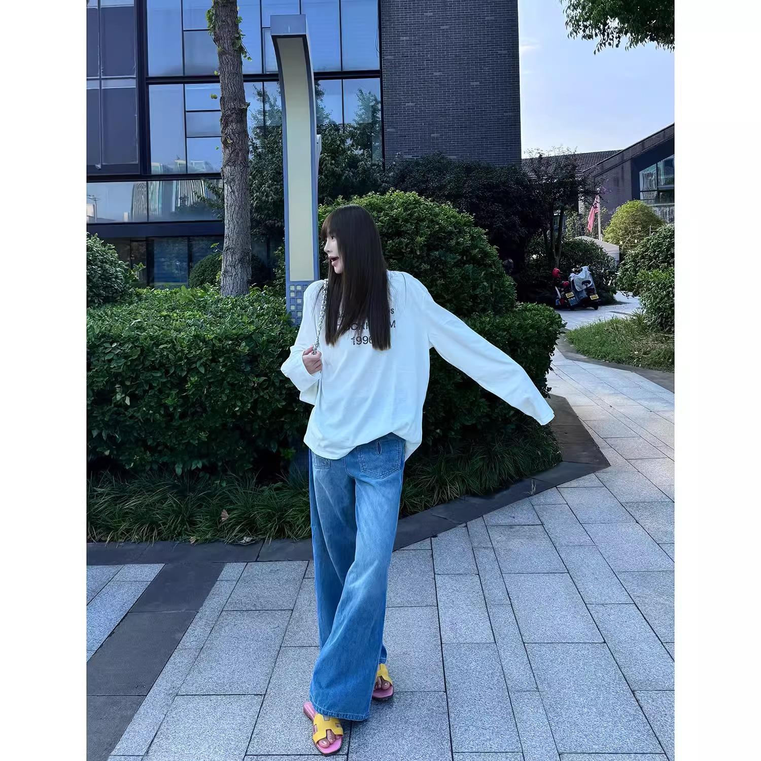 Playera de Manga Larga con Letras Estampadas Retro Americano, Top Versátil Casual Holgado para Mujer para Primavera y Verano, Manga Larga Básica