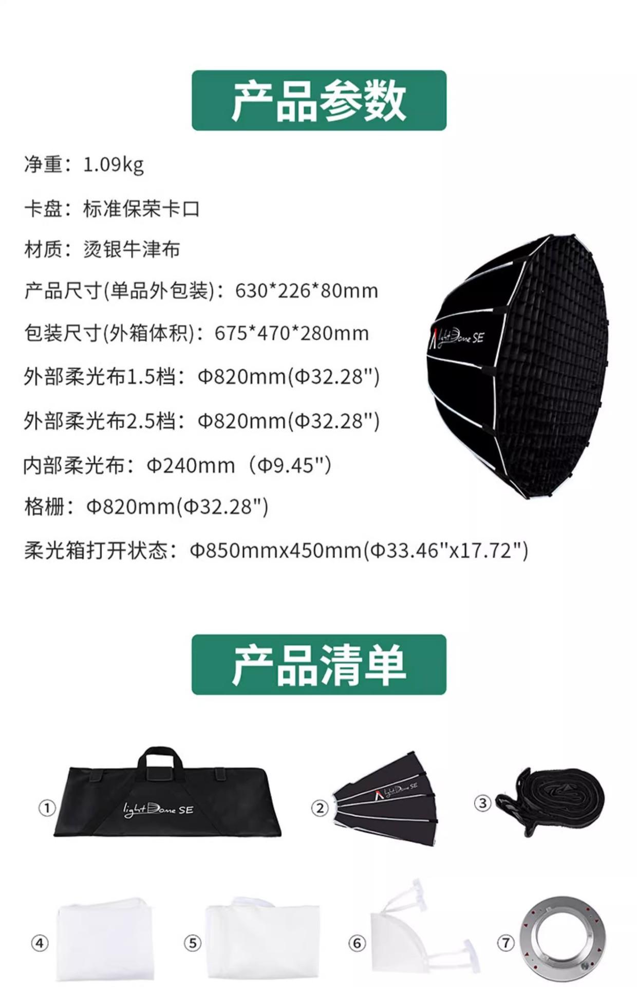 Aitus Light Dome Se Difusor de Luz de Relleno para Fotografía Conveniente Softbox Parabólico Profundo de 85 con Rejilla