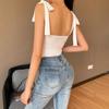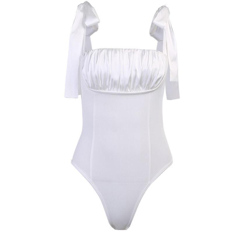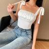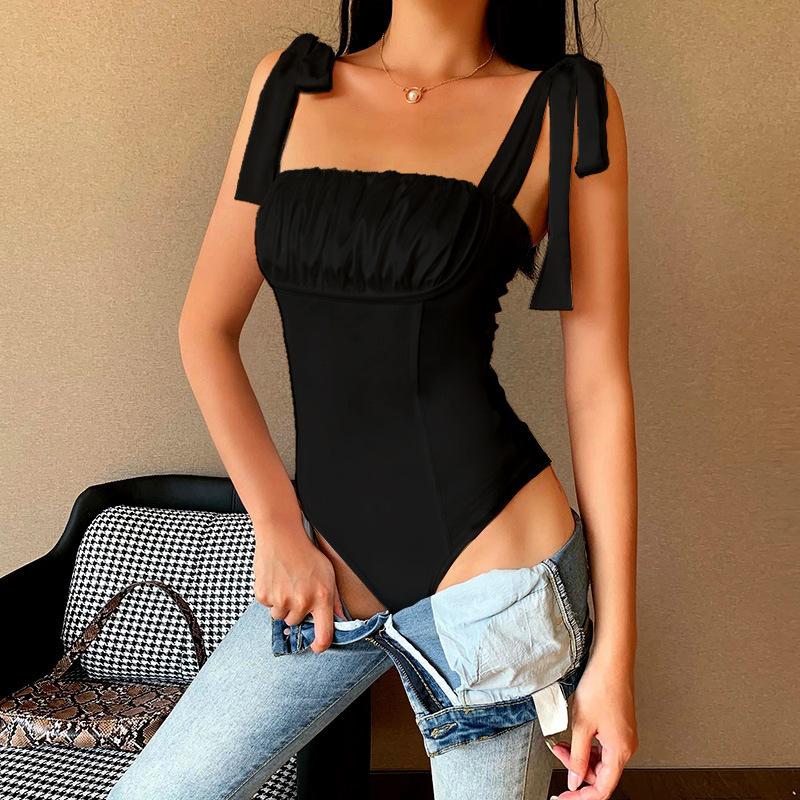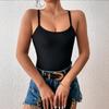 2025 Verano Nuevo Sexy Chica Caliente Delgado Temperamento Top Color Sólido Cordones Envolvente Pecho Tirantes Espagueti Body Mujer