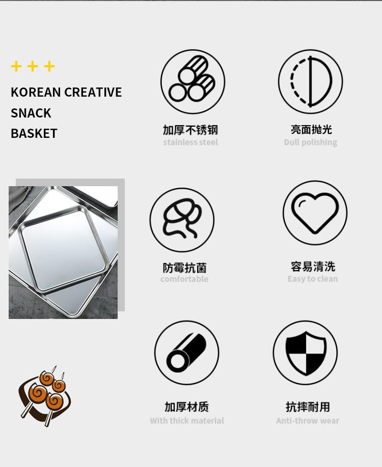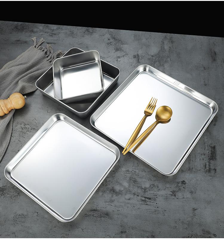 Plato cuadrado acero inoxidable plato para rollo de fideos de arroz plato plano plato para piel fría plato comercial para restaurante plato para barbacoa plato para vaporera bandeja