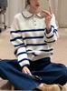 Compra Suéter de Punto Morado de Cuello Redondo con Botón Grande Dorado para Mujer Invierno 2024 Nuevo Casual Combinable Top Super Blanco al por mayor en Joom.pro