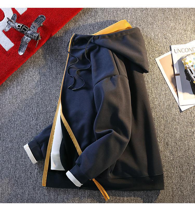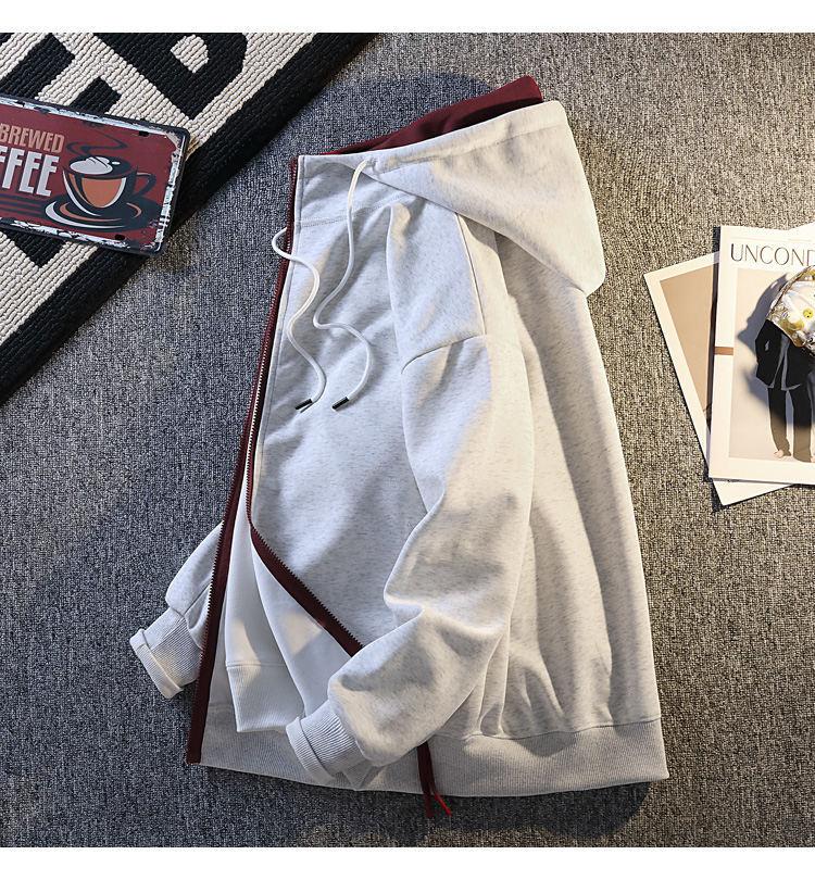 Sudadera con capucha y cremallera color block de otoño para hombre y mujer, holgada, para pareja, casual, para exterior, top con capucha