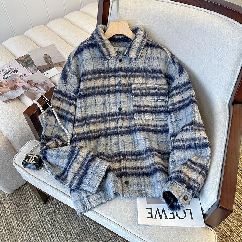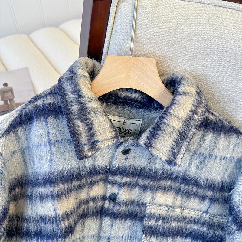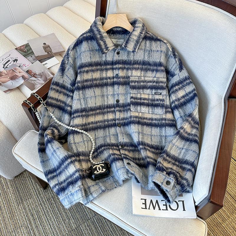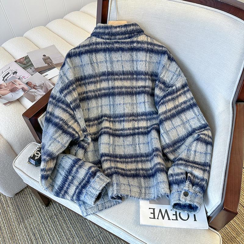 Otoño e Invierno nuevo abrigo de lana estilo retro americano coreano para mujer holgado neutro estilo perezoso moderno callejero top