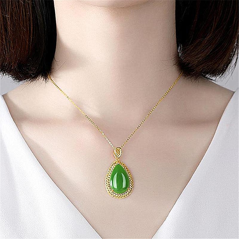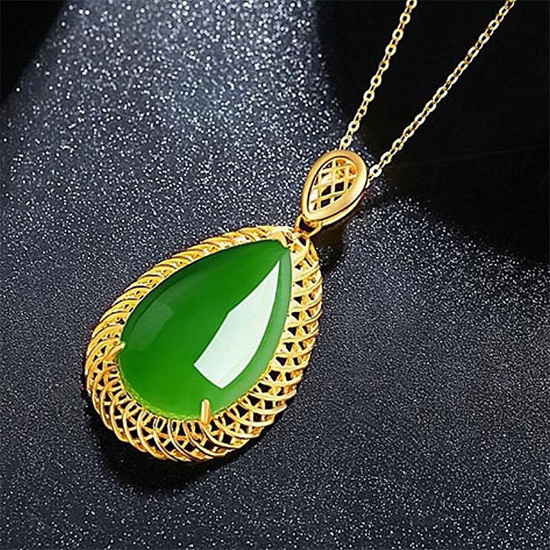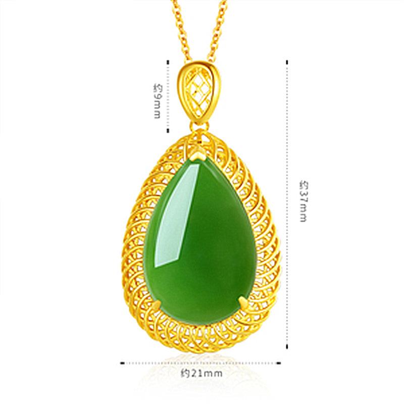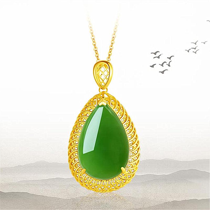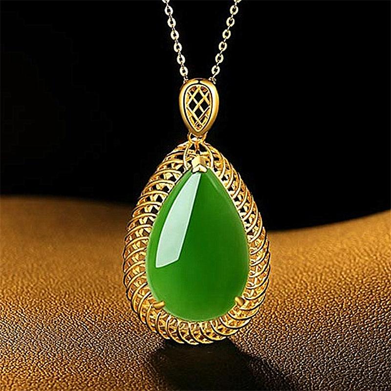 Colgante de jade chapado en oro con patrón retorcido, elegante colgante de jade hetiano, colgante de cuerda de jaspe, colgante de jade con forma de gota de lujo