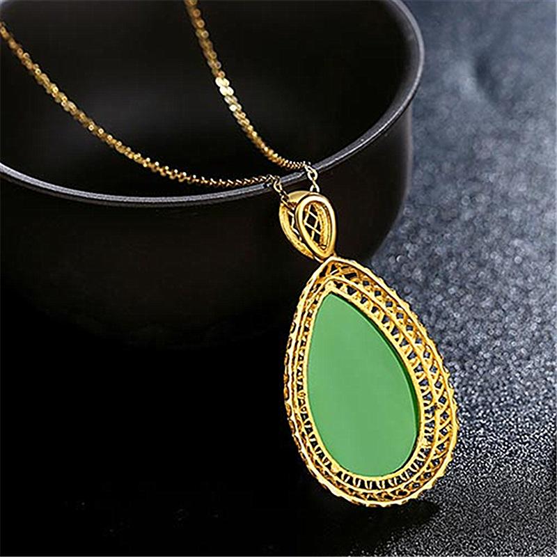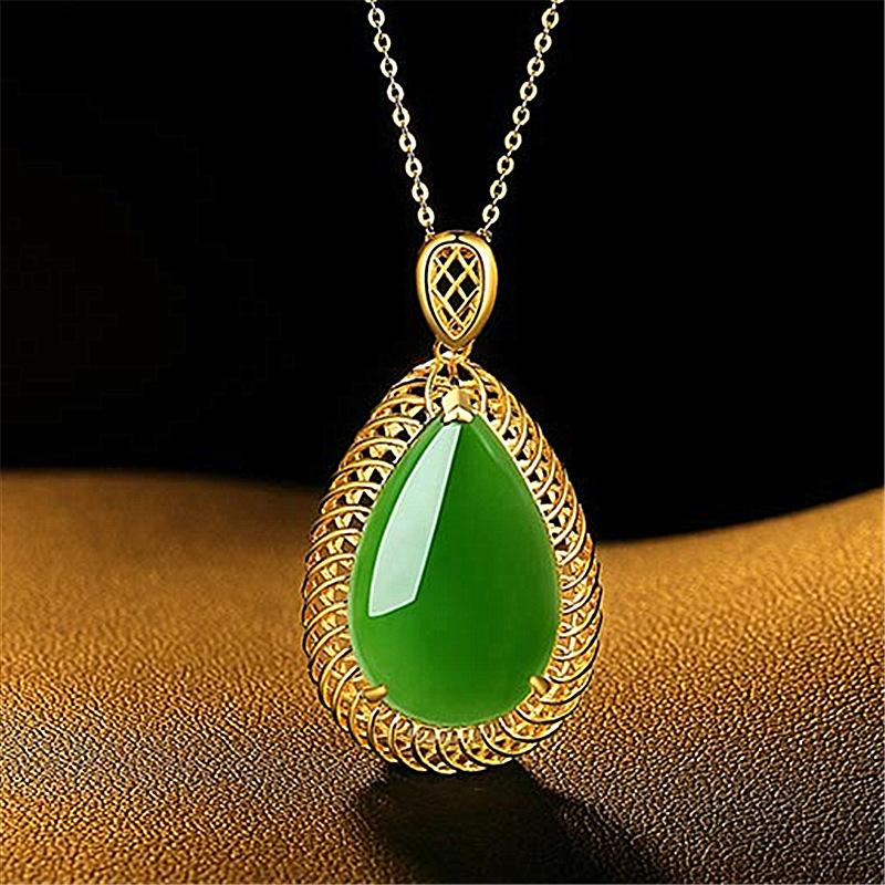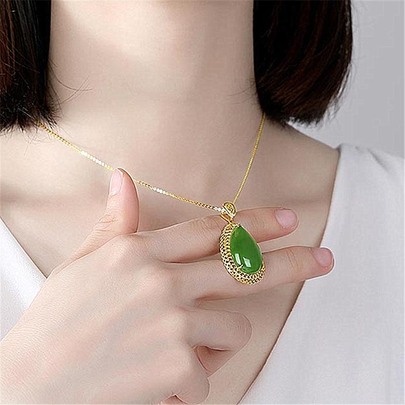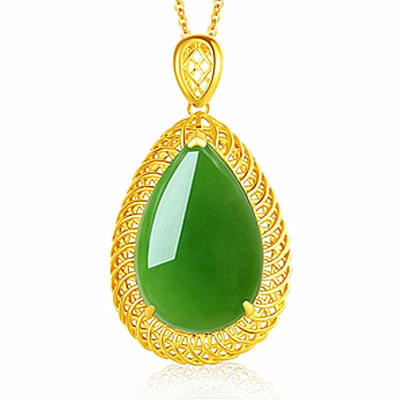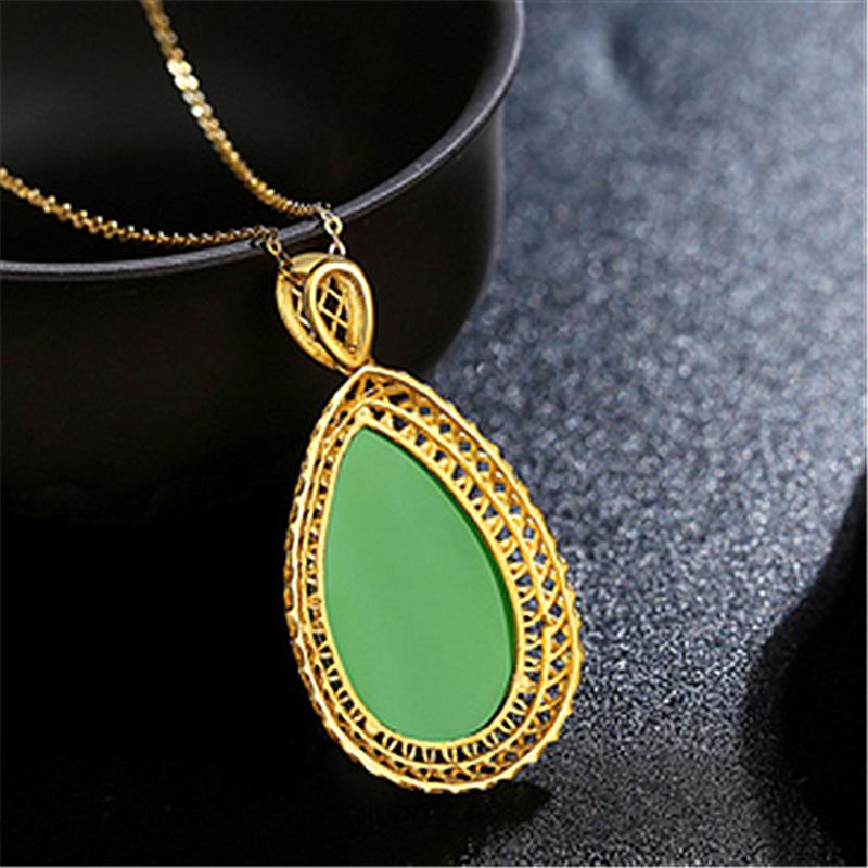 Colgante de jade chapado en oro con patrón retorcido, elegante colgante de jade hetiano, colgante de cuerda de jaspe, colgante de jade con forma de gota de lujo