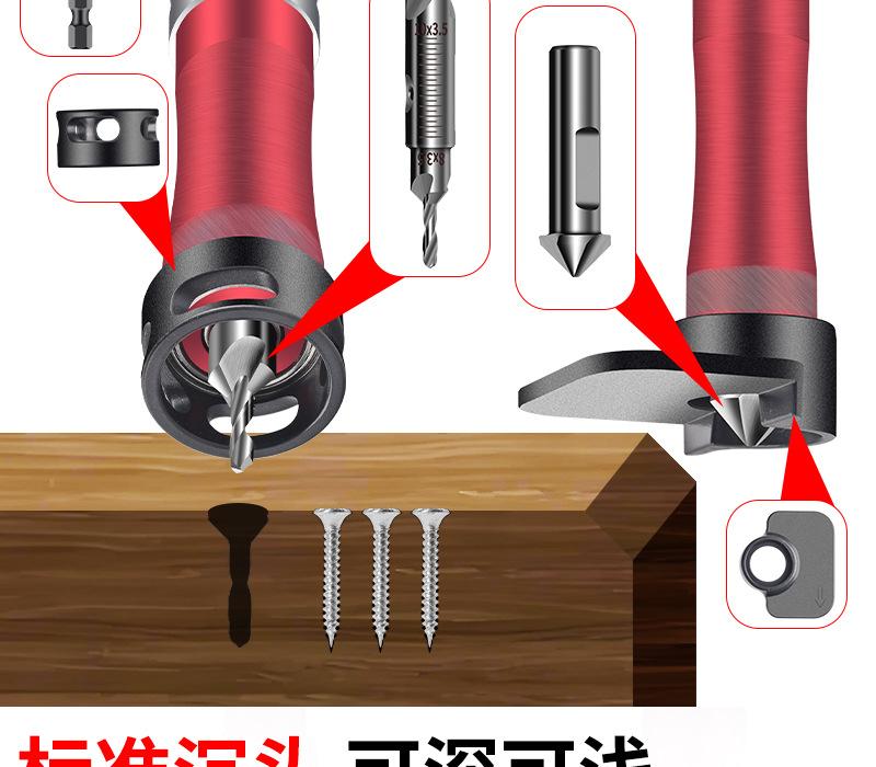 Juego de Brocas Avellanadoras Multifuncionales Tres en Uno con Tope de Profundidad, Broca Escalonada, Carpintería, Broca Avellanadora para Tornillos Autorroscantes