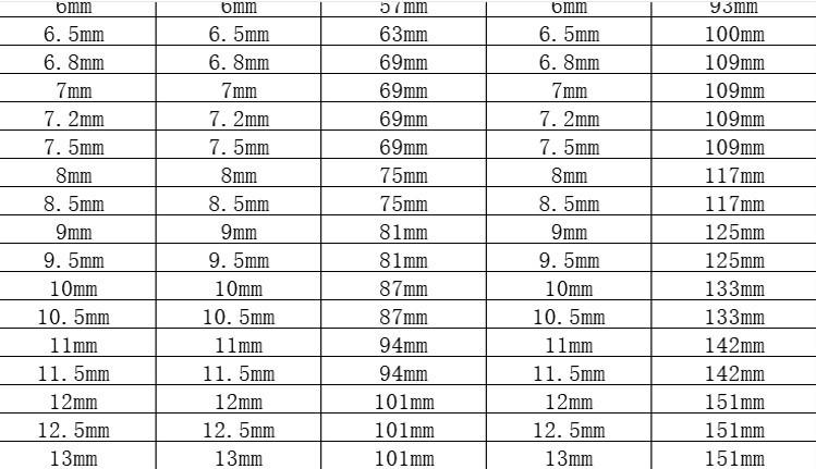 0.5mm-0.9mm (10 pieces) specifications and remarks, 1.0mm-1.5mm (10 pieces) specifications and remarks, 1.6mm-...
