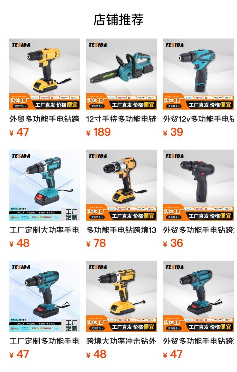 Taladro de mano multifuncional transfronterizo de 13 mm Taladro de impacto de alta potencia Taladro de pistola doméstico Taladro eléctrico de litio Atornillador eléctrico