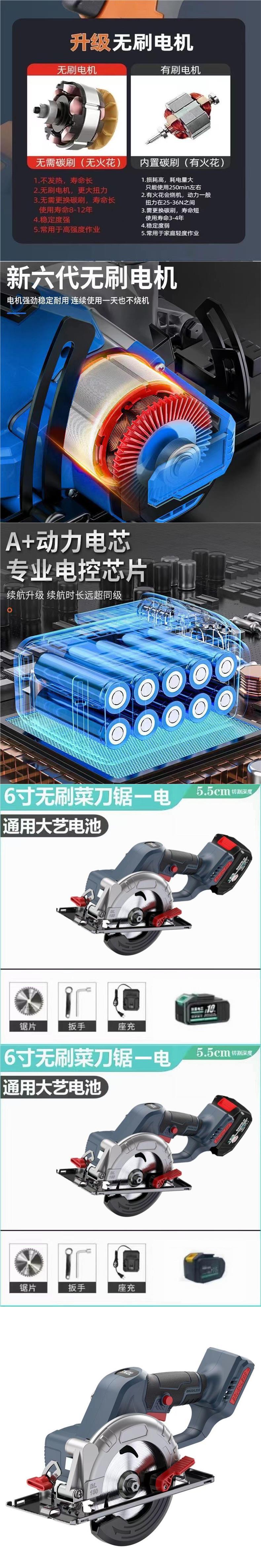 Dafei 6-inch digital saw cutting depth - 10 batteries, one charge per charge