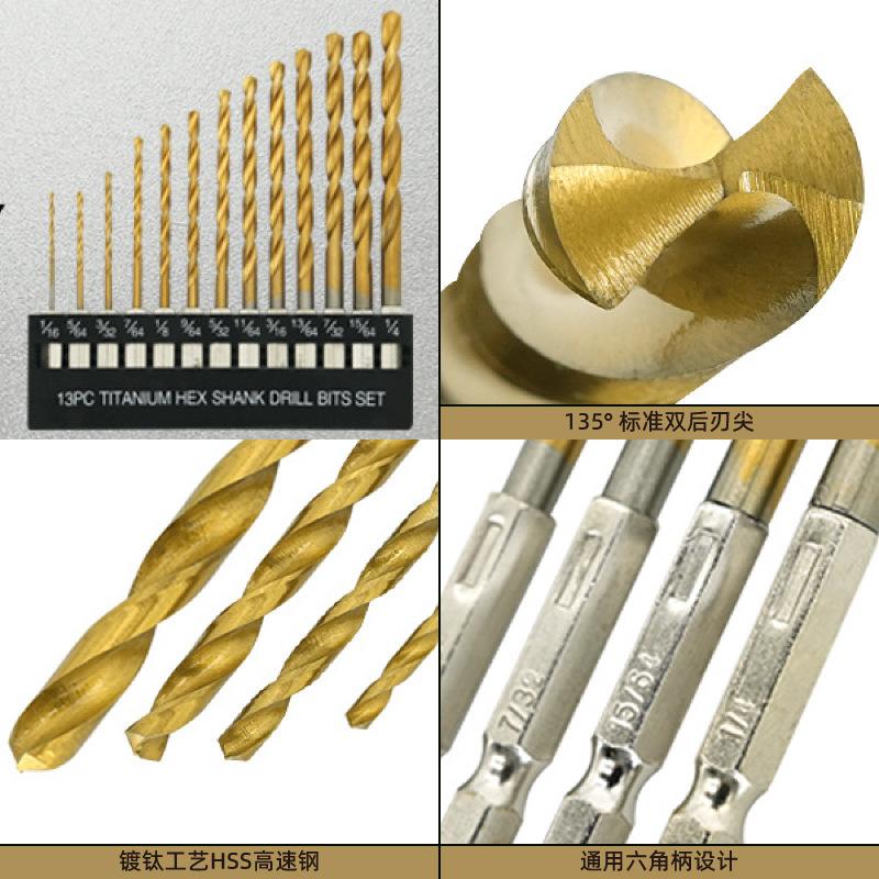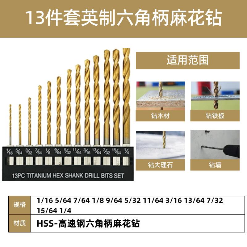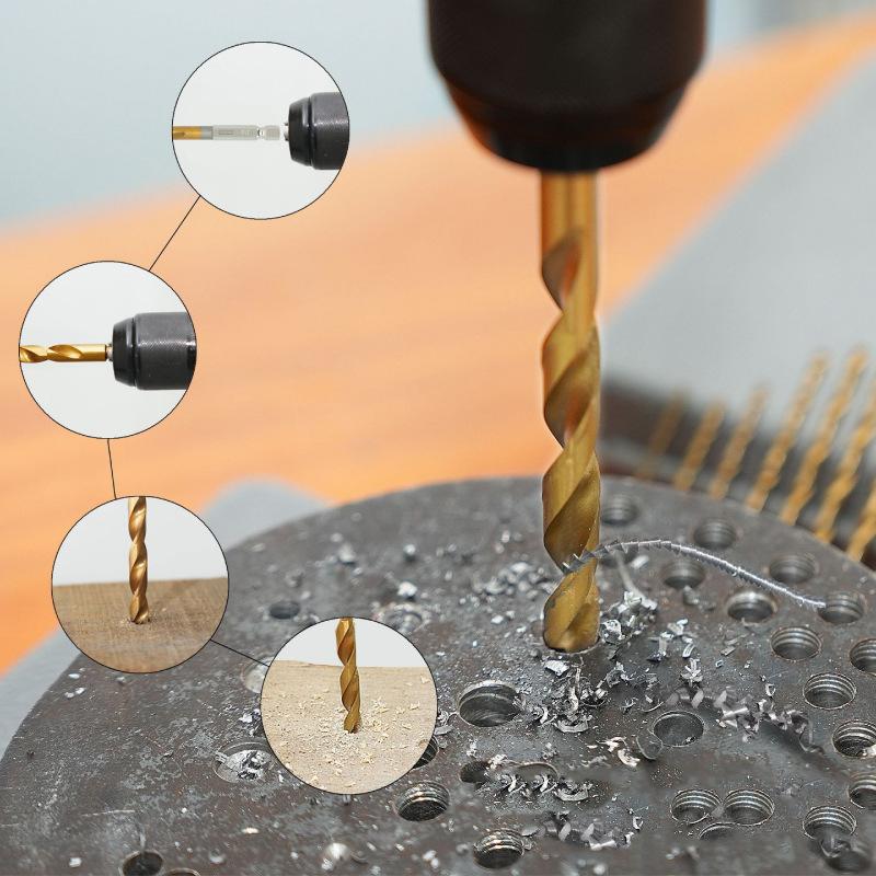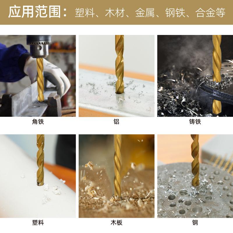 Broca helicoidal de mango recto Taladro manual eléctrico Juego de herramientas de metal plástico Acero de alta velocidad Titanio chapado Broca helicoidal para carpintería