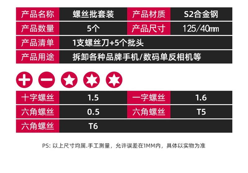 Herramienta especial de desmontaje para teléfono móvil, juego de destornilladores pequeños de mantenimiento, adecuado para Apple, estrella de cinco puntas, hexágono, lote cinco en uno