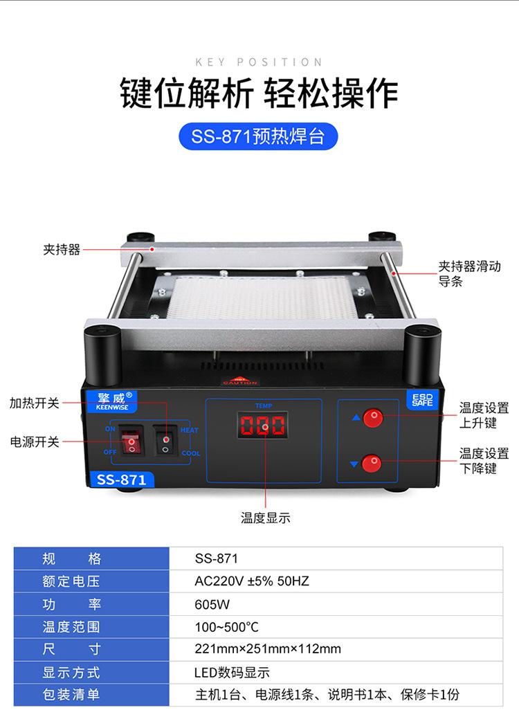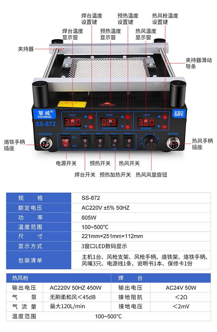 SS-871 (Infrared preheating table), SS-872 Three-in-one (preheating + soldering iron + hot air gun), SS-872 Th...