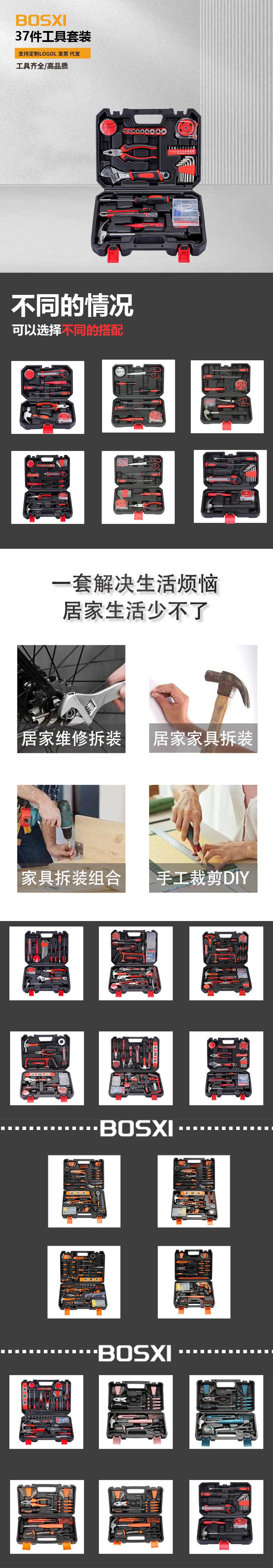 Juego de Herramientas de Ferretería Doméstica Bosxi Combinación Multifuncional Reparación Martillo de Uña Electricista Llave Fija Juego de 37 Piezas