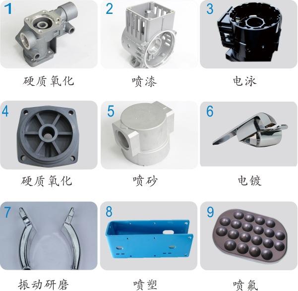Galvanoplastia, pulido, pulverización de fluorocarbono, pintura, electroforesis, anodizado duro, recubrimiento en polvo, arenado, acabado vibratorio, etc. |