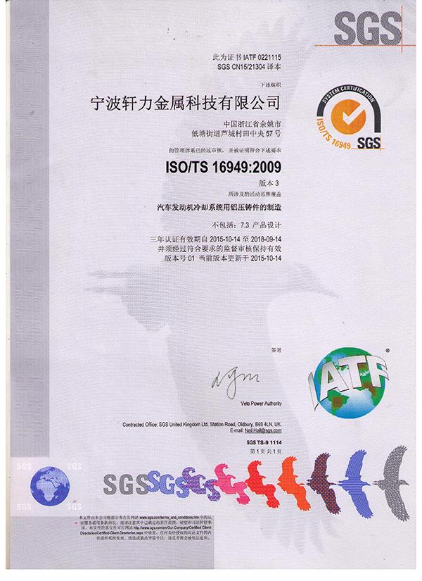 Nuestra empresa ha aprobado la certificación del sistema de gestión de calidad ISO/TS16949:2009.