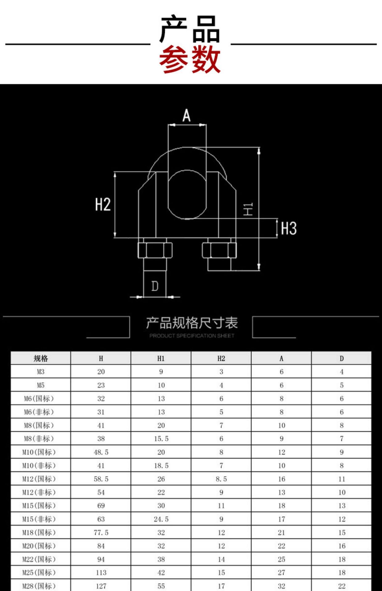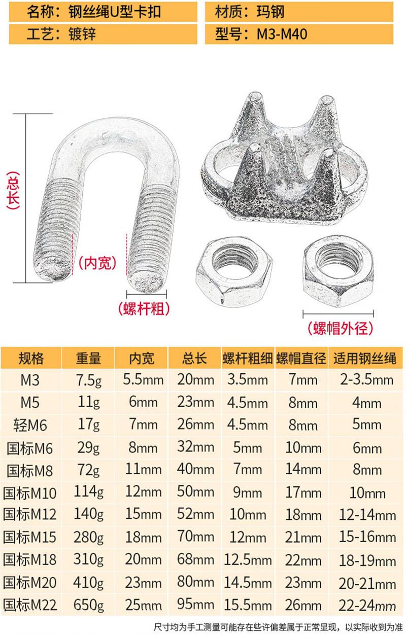 M6 (suitable for 6mm steel wire rope) 10 pieces, M8 (suitable for 8mm steel wire rope) 10 pieces, M10 (applica...