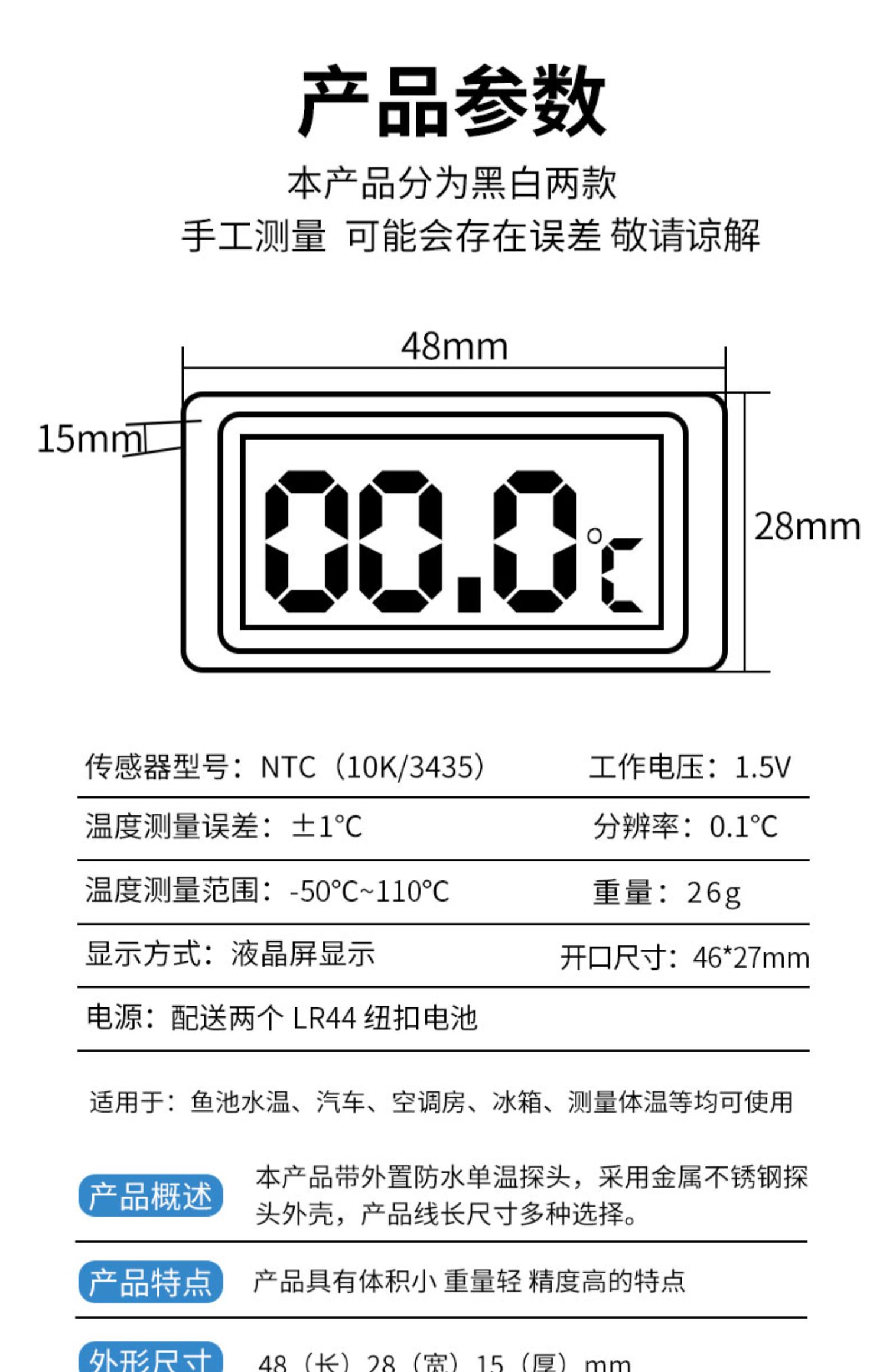 Termómetro digital con sonda de alta precisión para acuario, cría, sensor electrónico de temperatura, termómetro para refrigerador