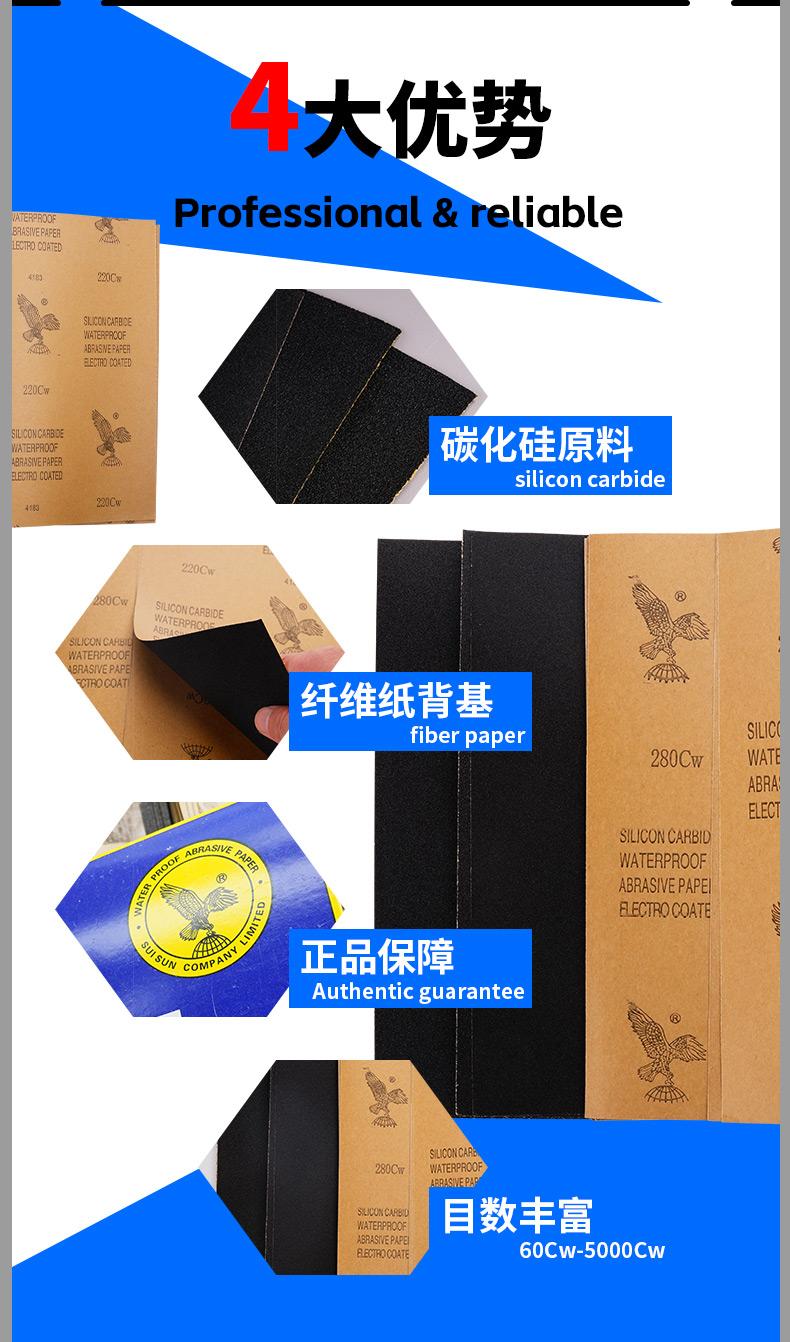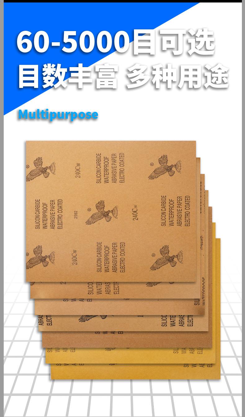 Papel de lija Carpintería Papel de lija Lijado al agua Papel de lija seco Pulido de paredes Tela de lija Arena Lija Lija fina Carburo de silicio Jade