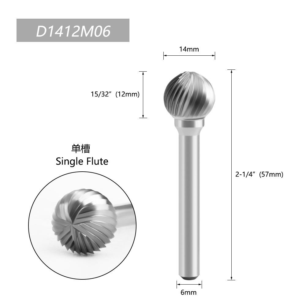 | M06D1412 | Fresa esférica de un solo filo D6x14x12 | 0.04 | caja de plástico blanca | 85.5*20*20 |