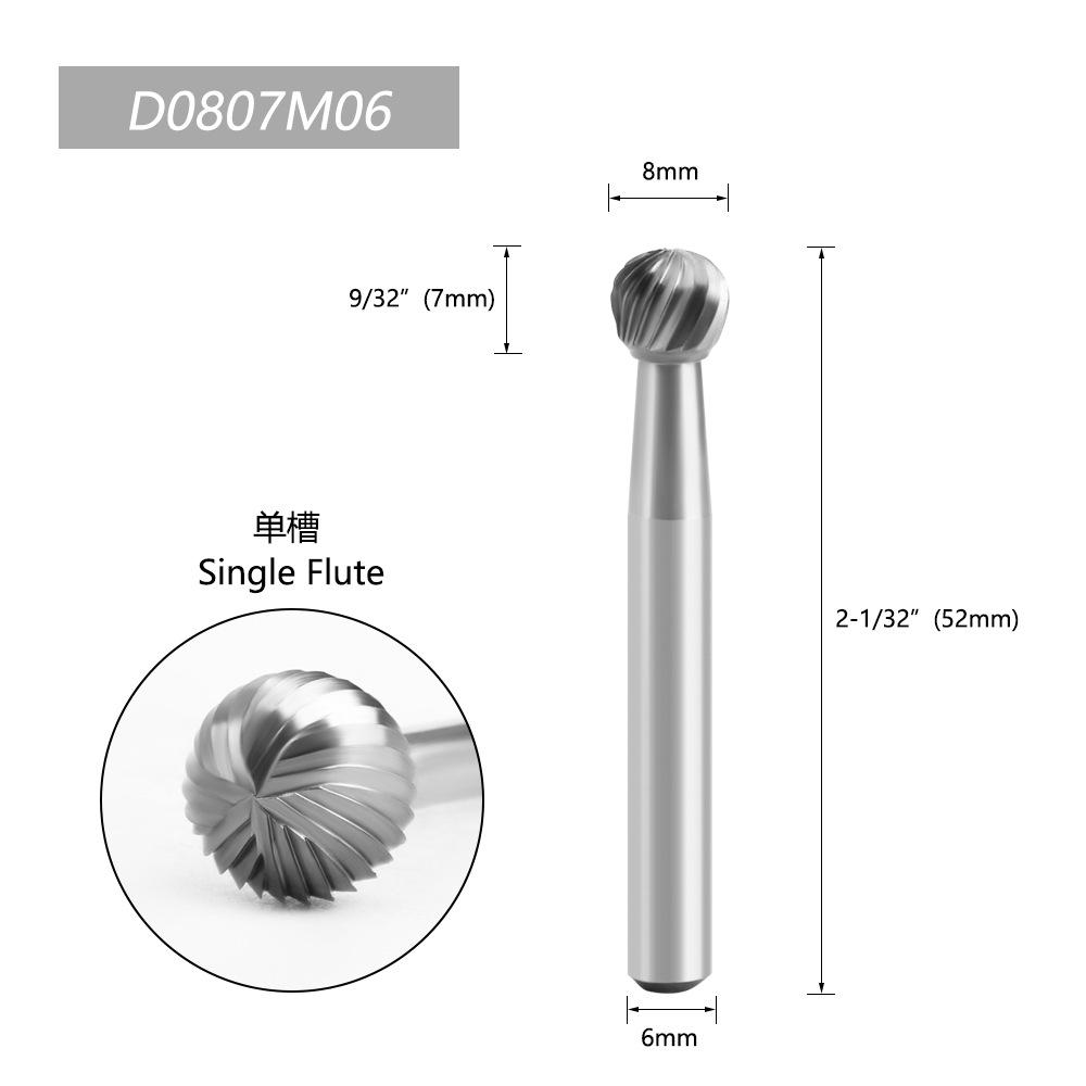 | M06D0807 | Fresa esférica de un solo filo D6x8x7 | 0.02 | caja de plástico blanca | 85.5*20*20 |
