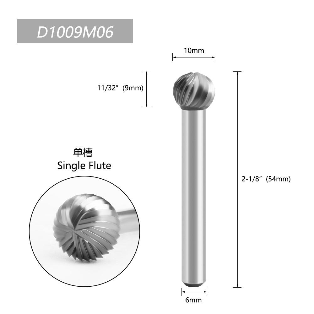 | M06D1009 | Fresa esférica de un solo filo D6x10x9 | 0.023 | caja de plástico blanca | 85.5*20*20 |