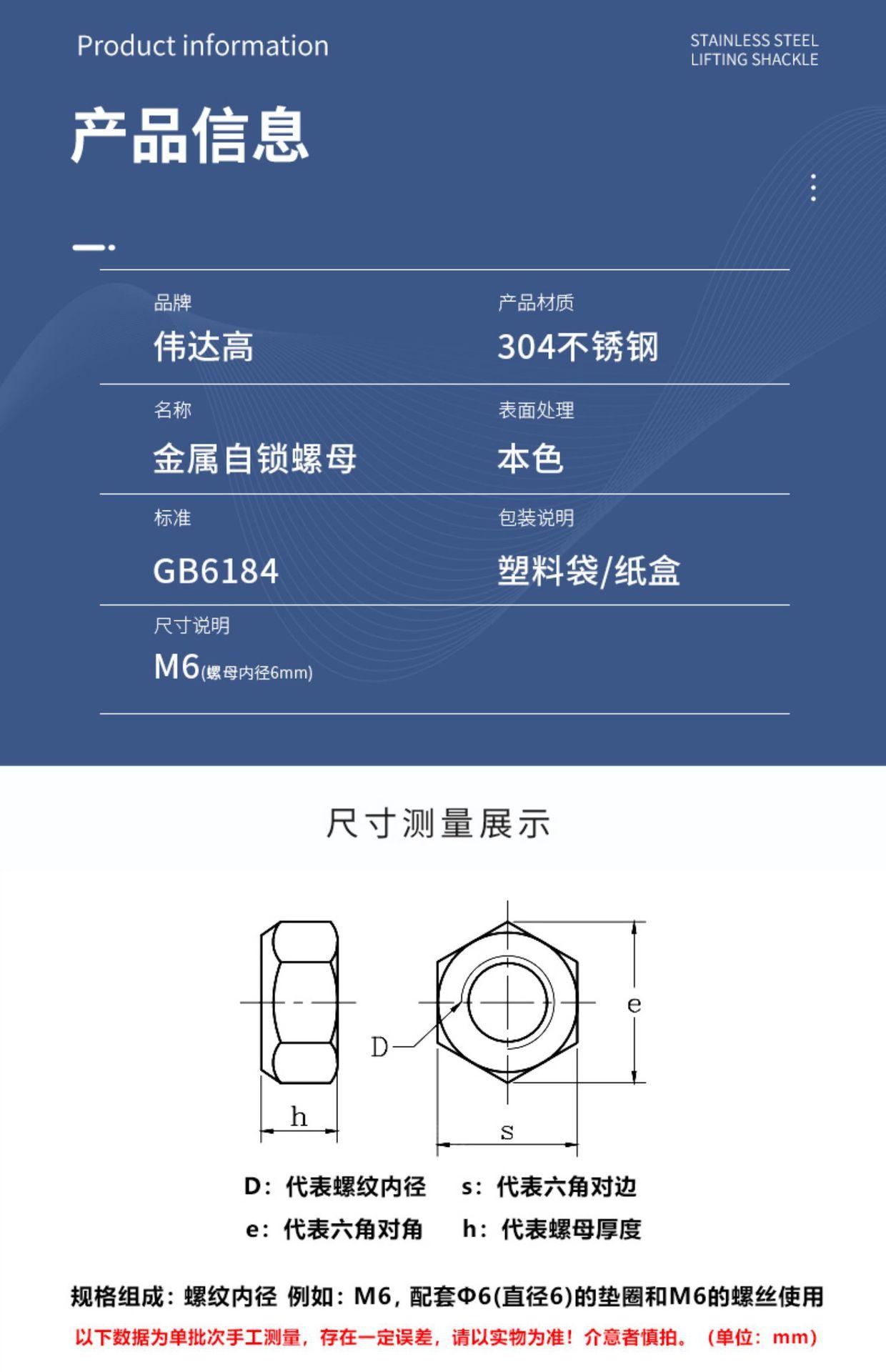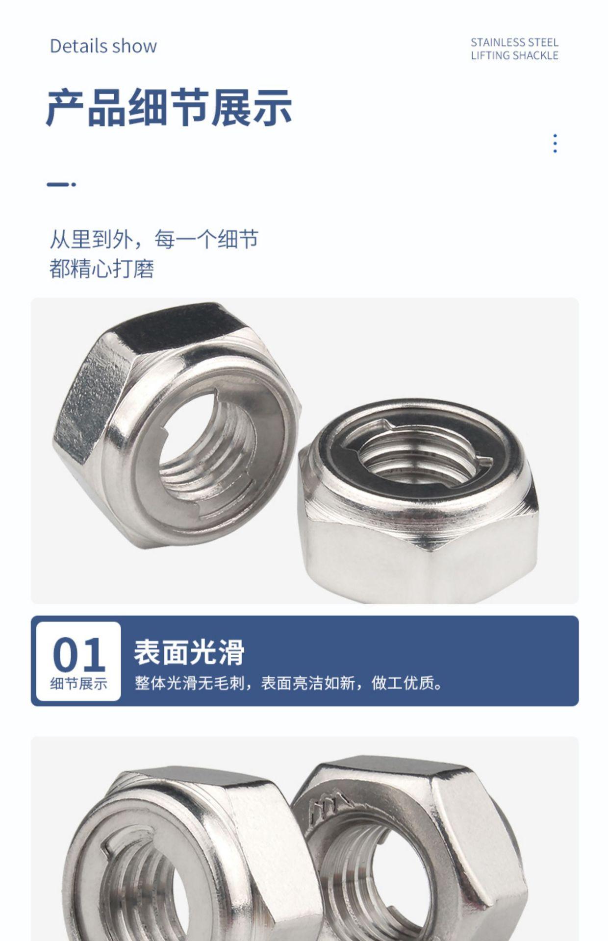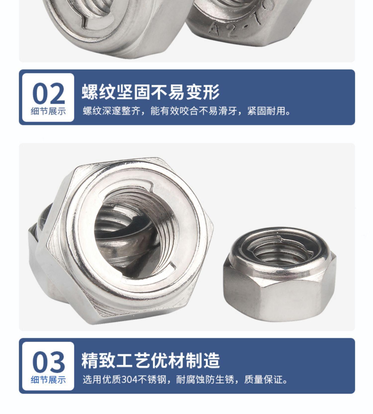 Tuerca de seguridad de acero inoxidable 304 con bloqueo de metal, tapa de tornillo hexagonal autoblocante antideslizante M4M5M6M8M10M12