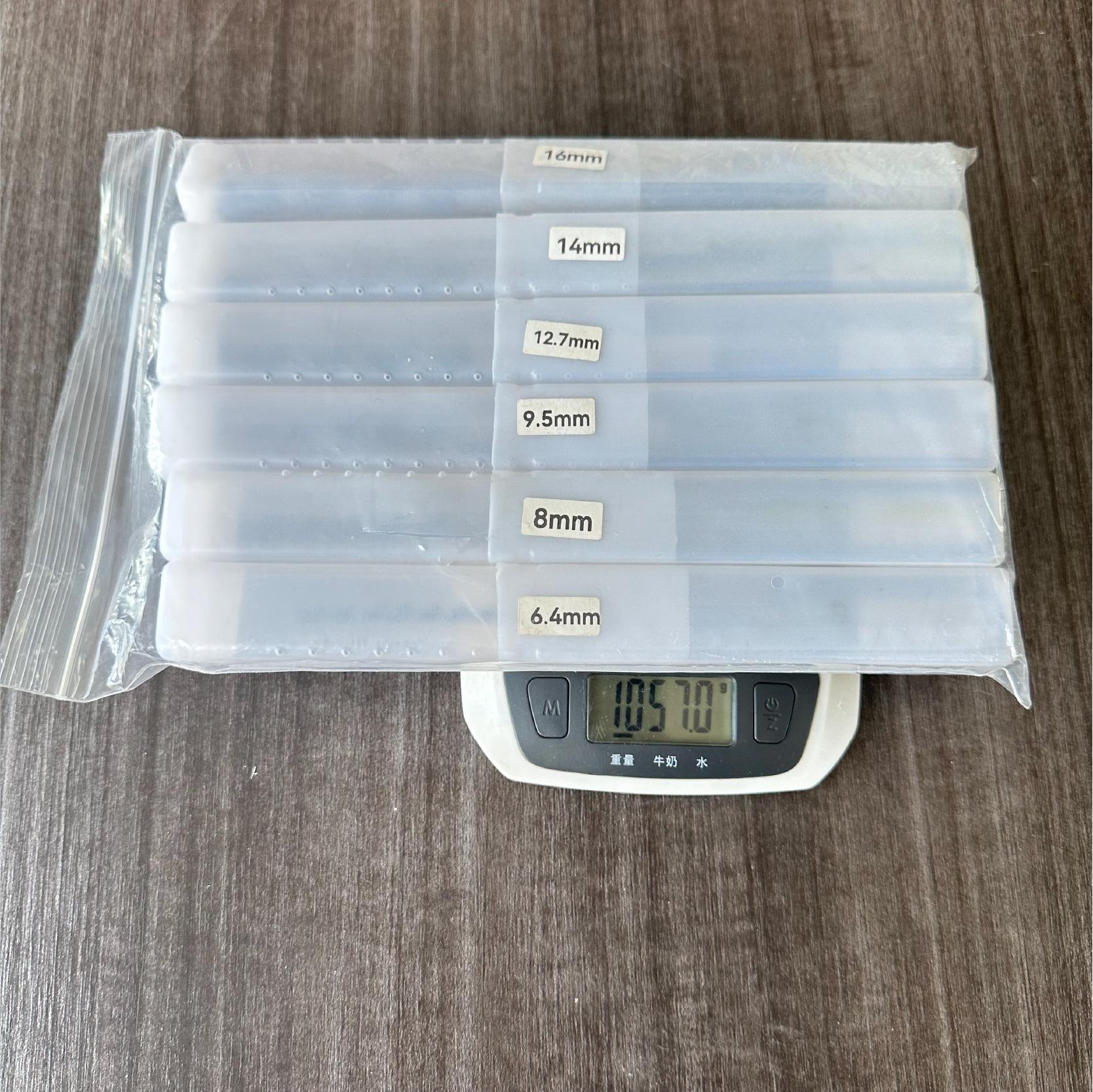 6.4mm plastic box 113g, 8mm plastic box 141g, 9.5mm plastic box 154g, 12.7mm plastic box 195g, 14mm plastic bo...