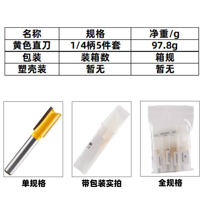 Cuchillo Recto 1/4 Mango Juego de Fresas para Carpintería Cabezal de Fresado para Ranurado Cuchillo de Recorte de Acero de Tungsteno Herramienta de Corte de Fresado de Baquelita Cuchillo de Grabado