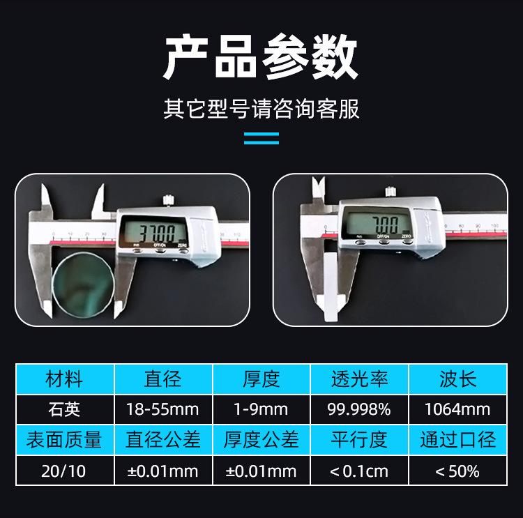 Lente de Protección Láser 30*5 Cuarzo Importado Máquina de Soldadura 28*4 Pieza de Ventana 37*7 Accesorios para Cabezal de Máquina de Corte de Fibra Óptica