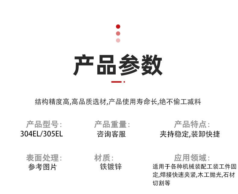 Abrazadera rápida/Mandril/Prensa/Abrazadera Werkzeug Tipo Push-Pull 304El Carrera Extendida 305El Abrazadera Rápida
